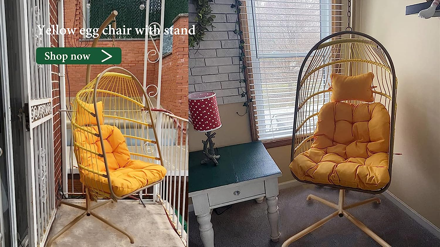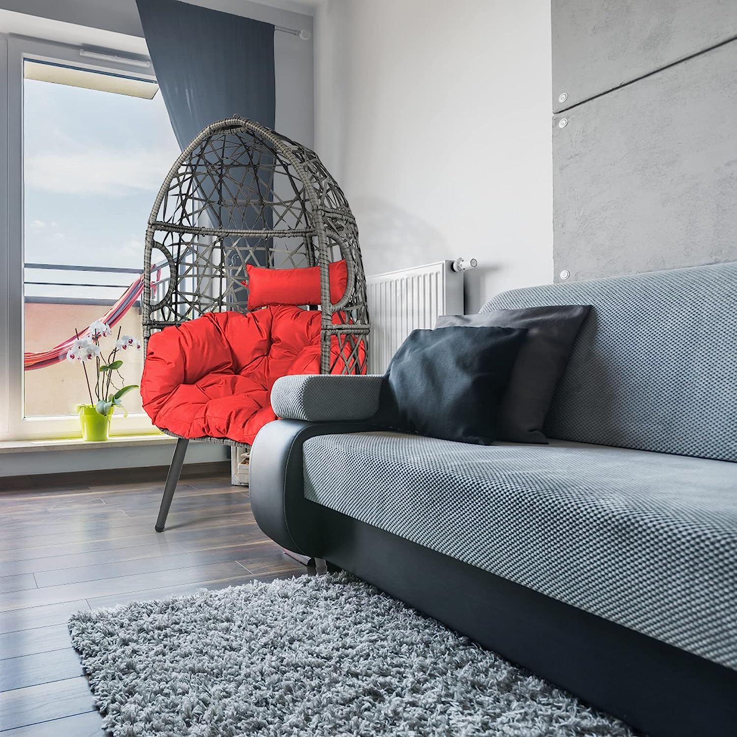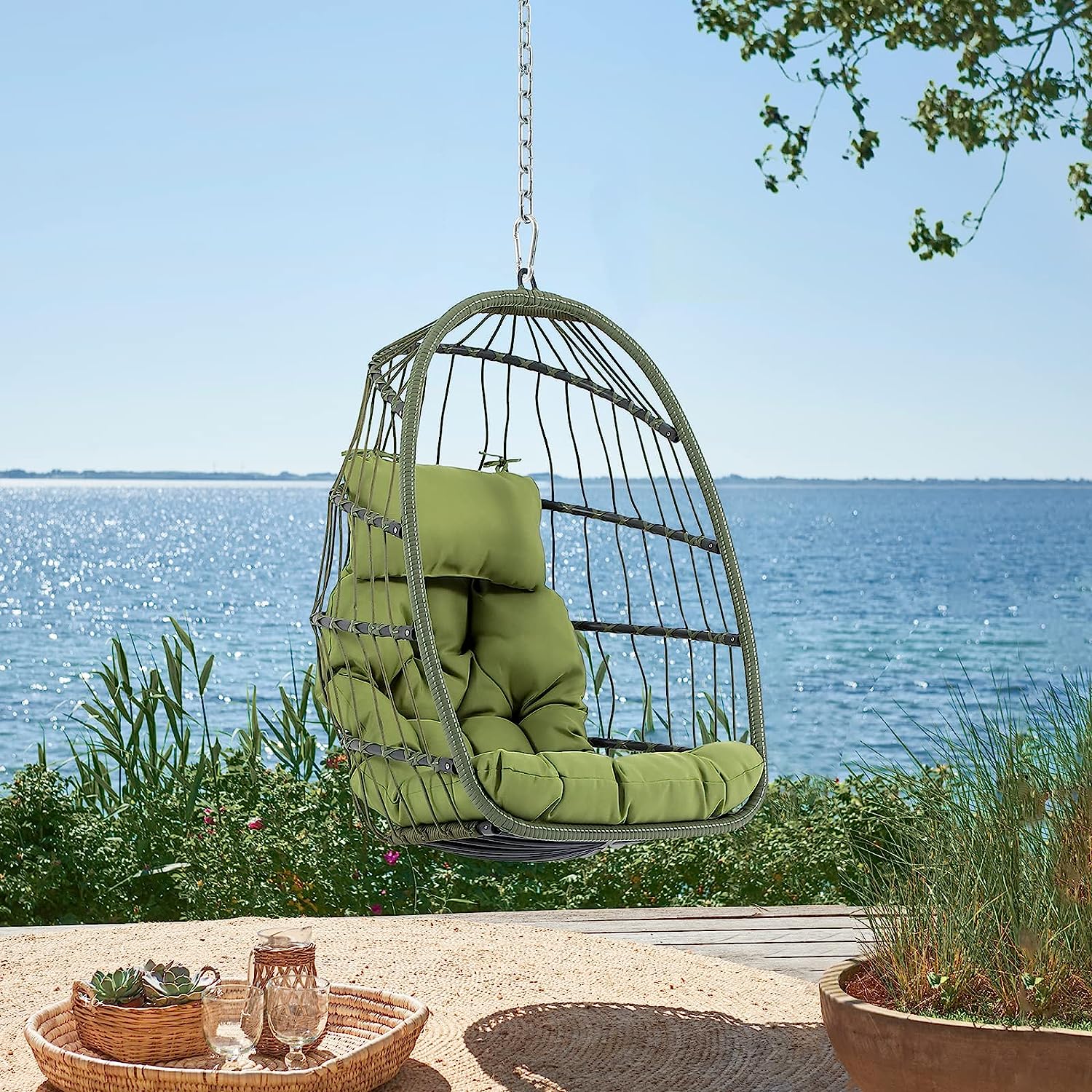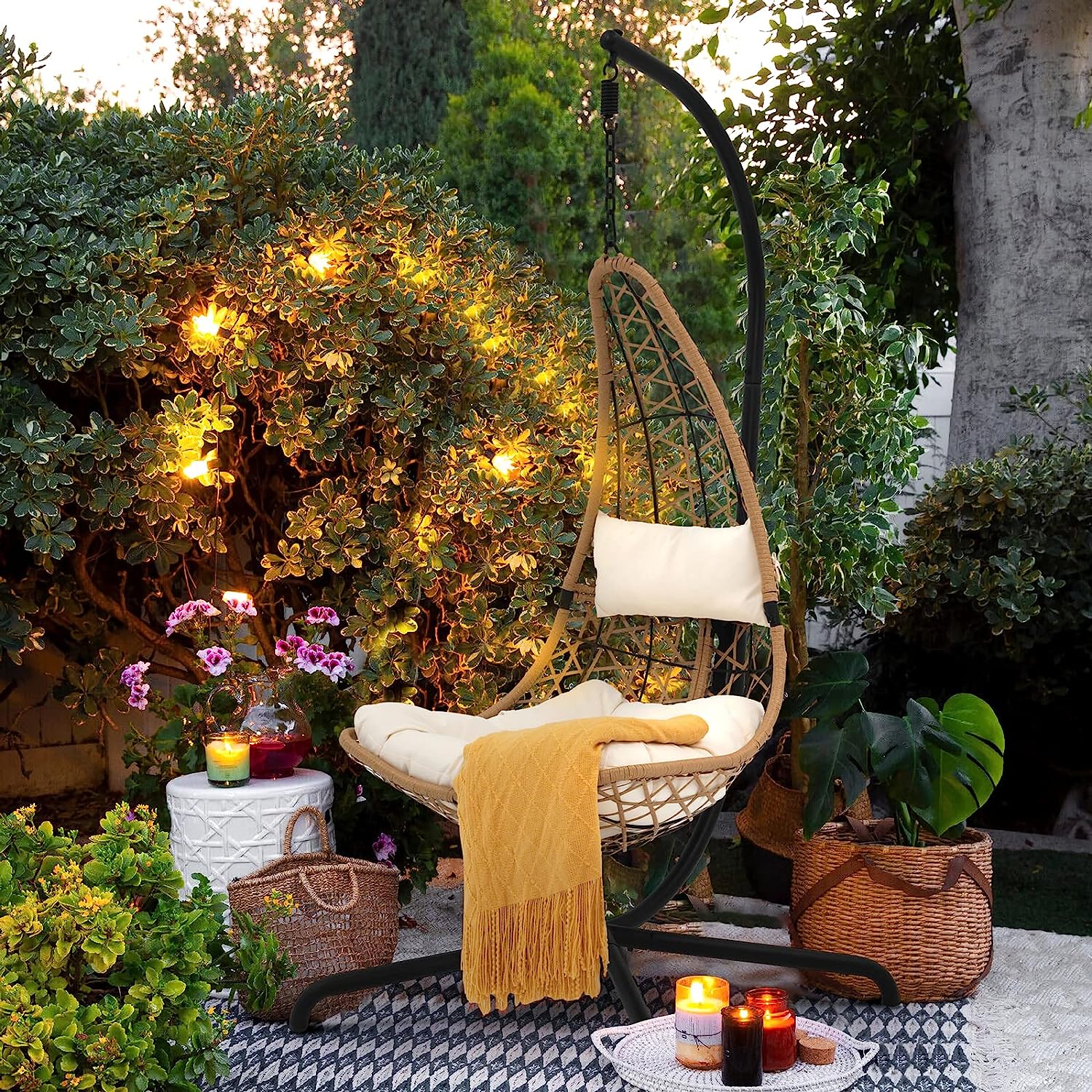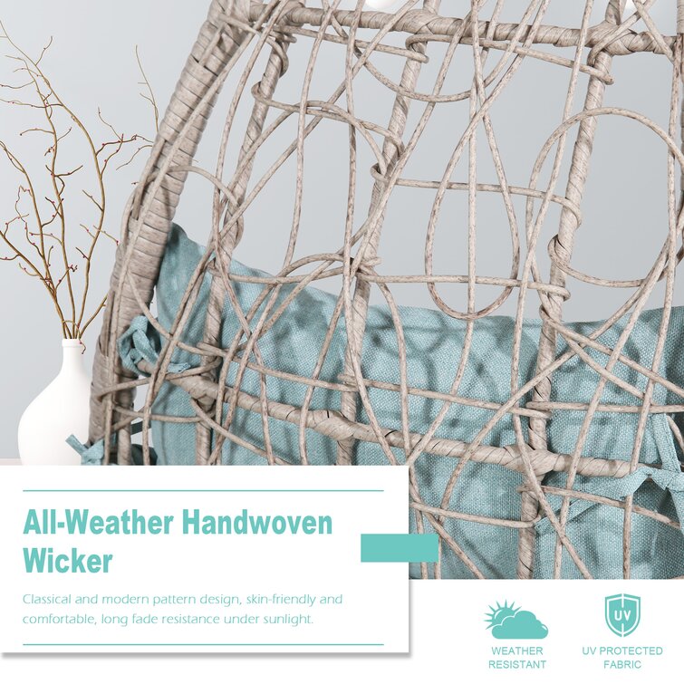 Ulax Furniture Outdoor Wicker Hanging Chair Indoor Swing Egg Chair with Stand Patio Rattan Hammock Basket Chair with Soft Deep Fluffy Cushion