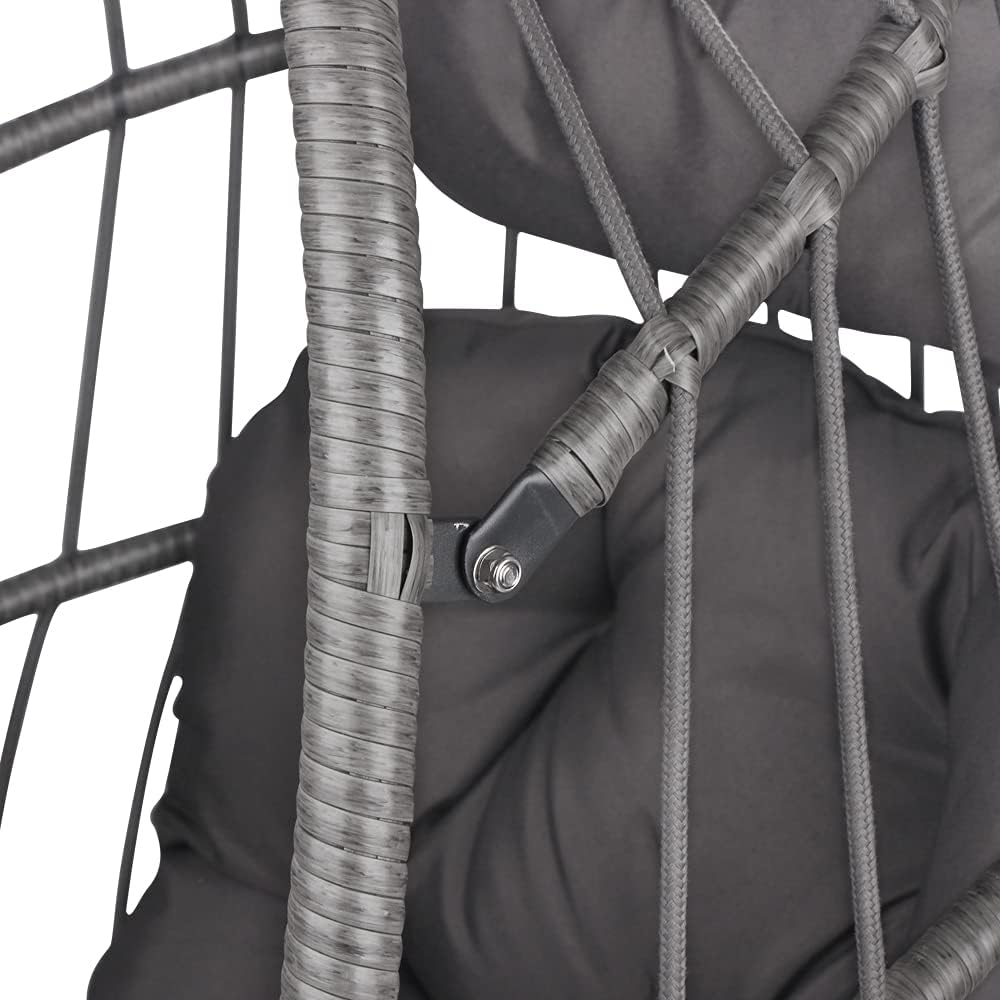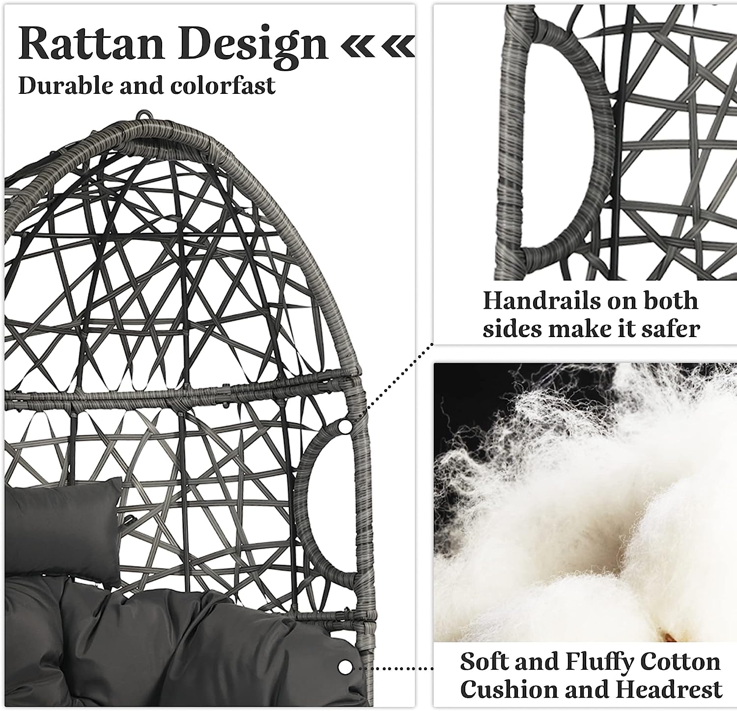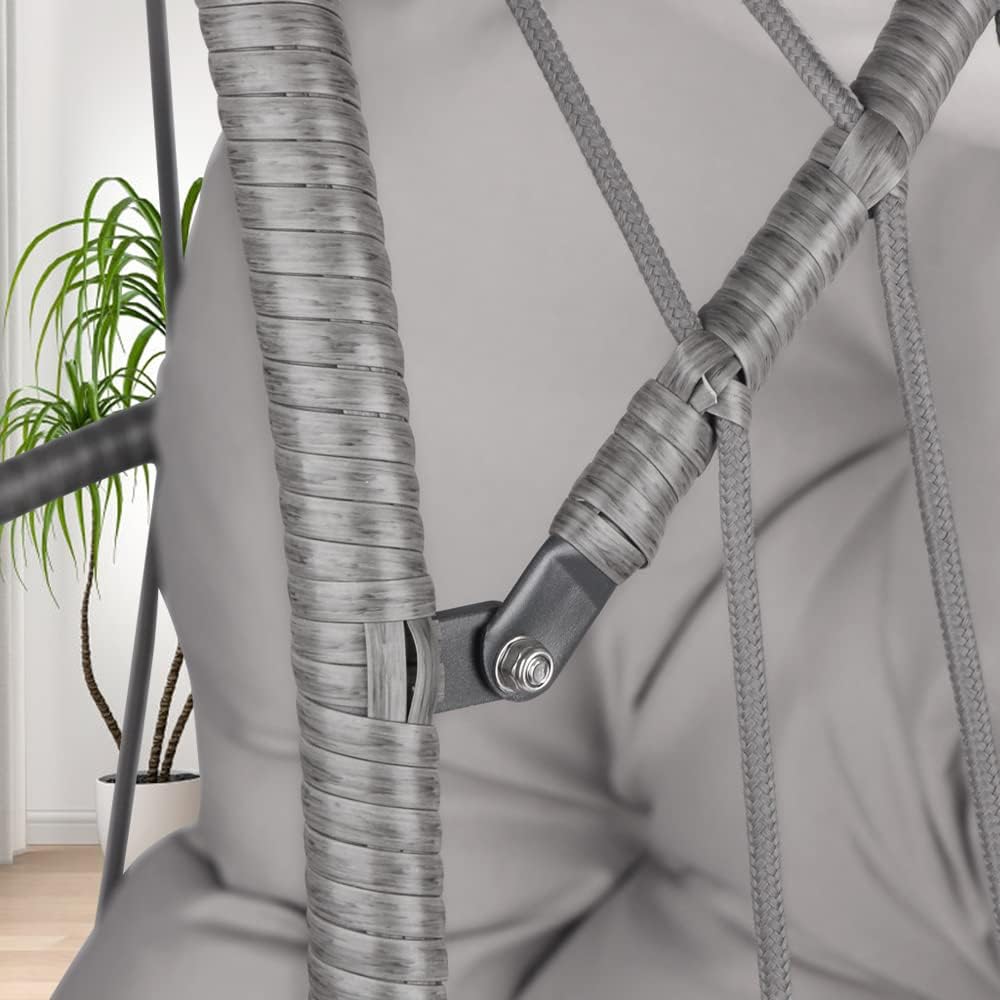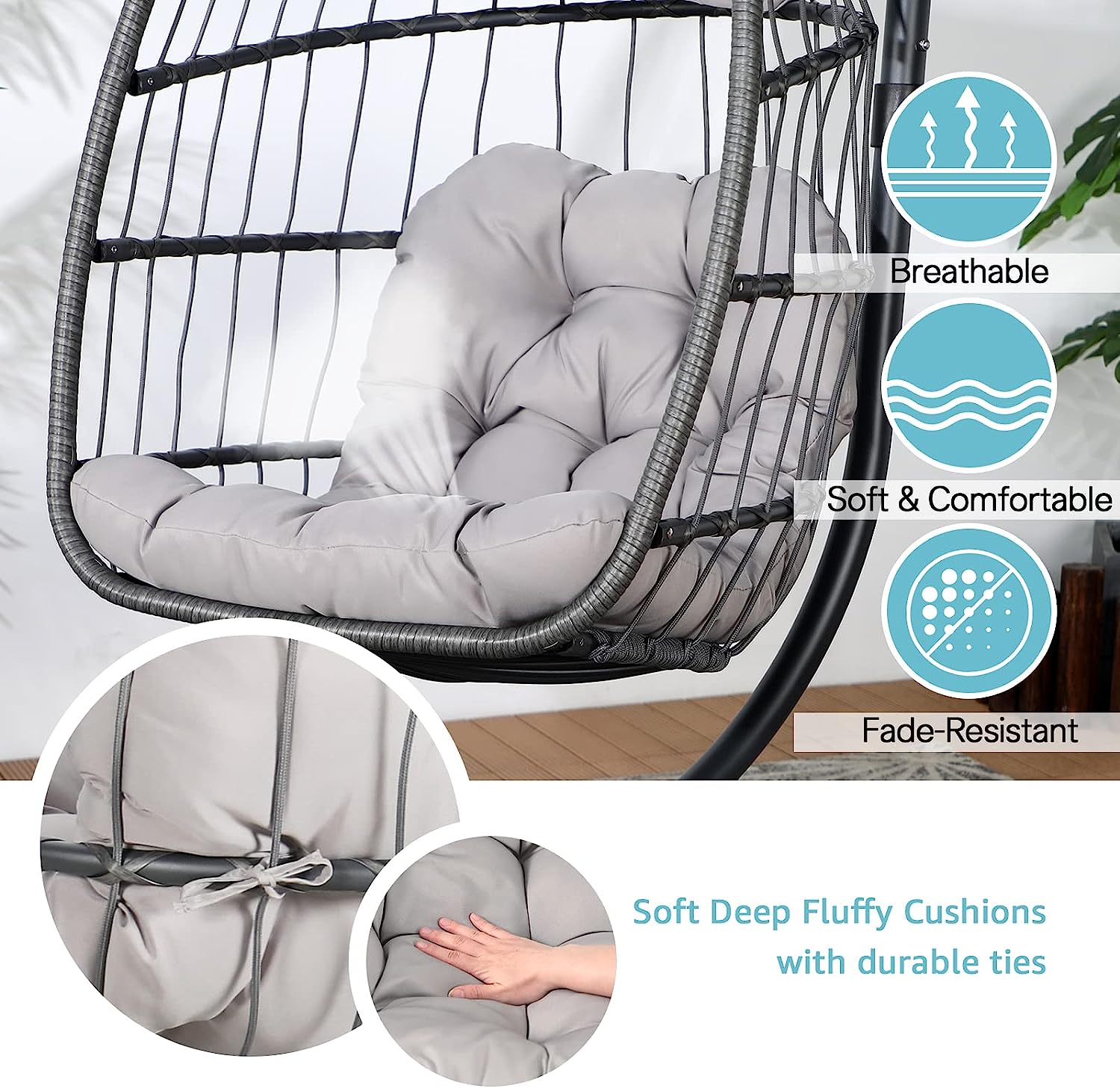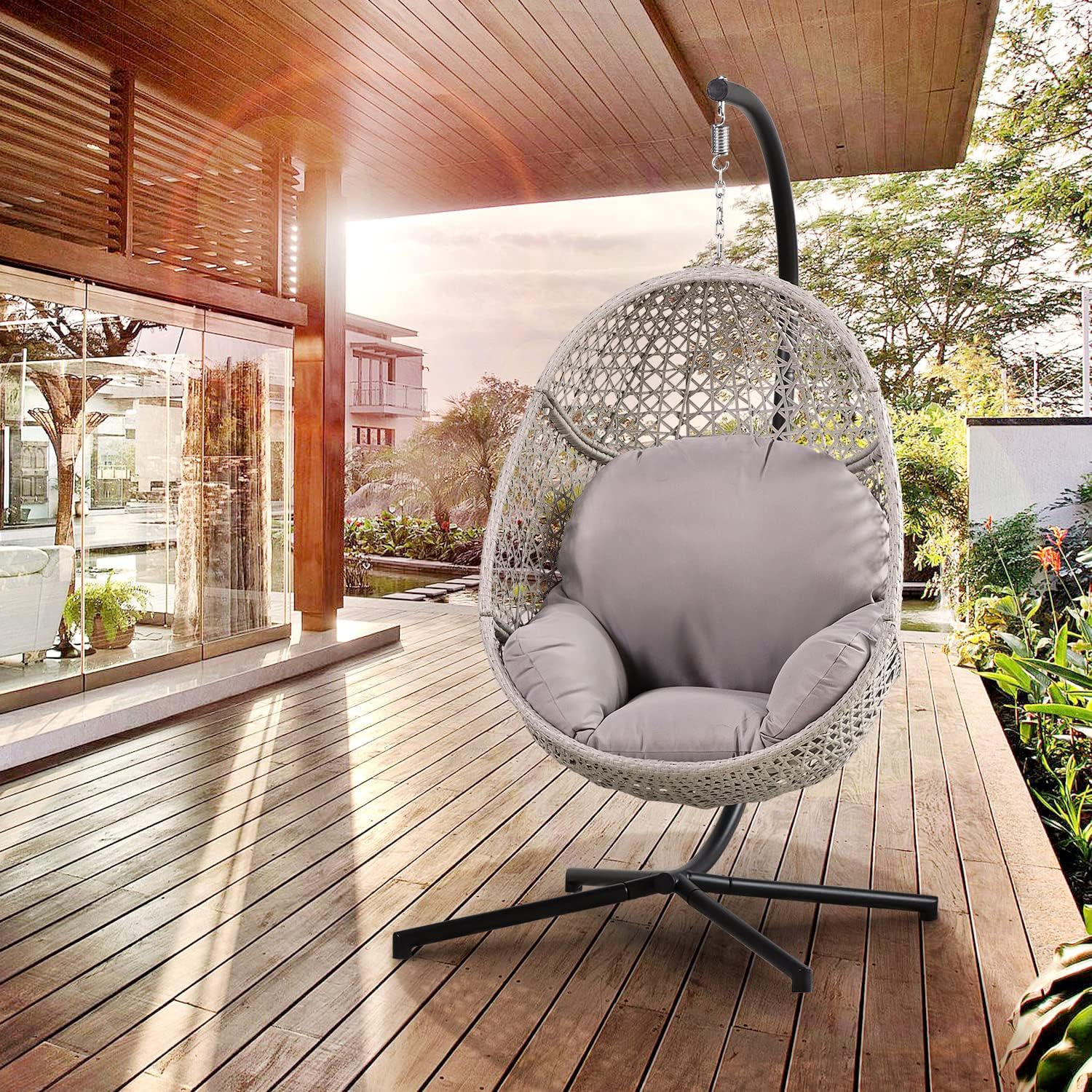 Mojia Patio Wicker Hanging Egg Swing Chair with Stand, Hammock Egg Chairs Foldable UV Resistant Cushions 440lbs Capaticy (Gray)