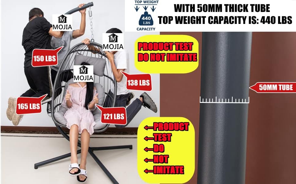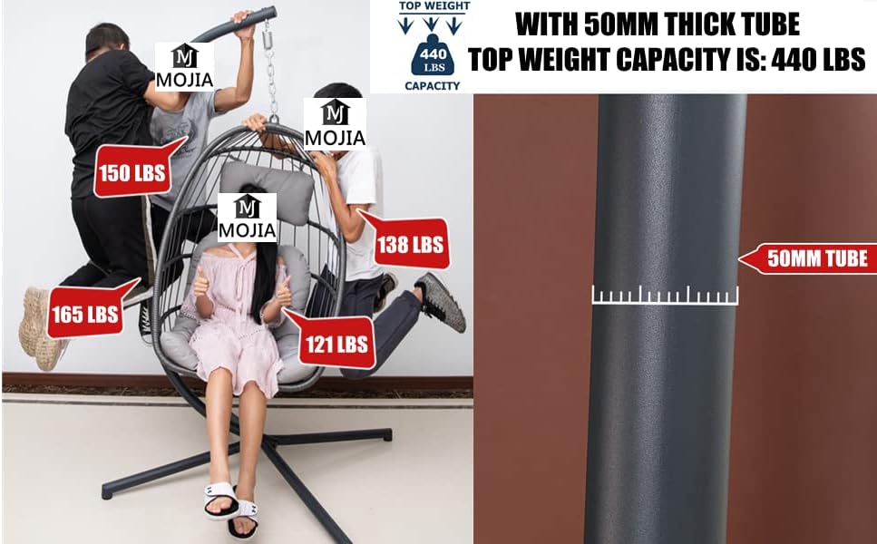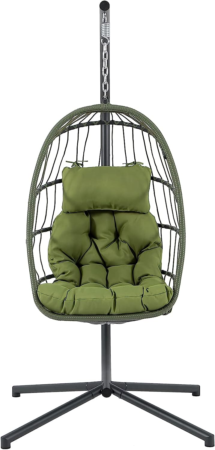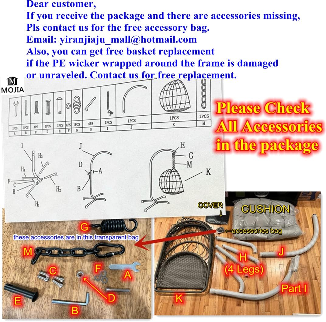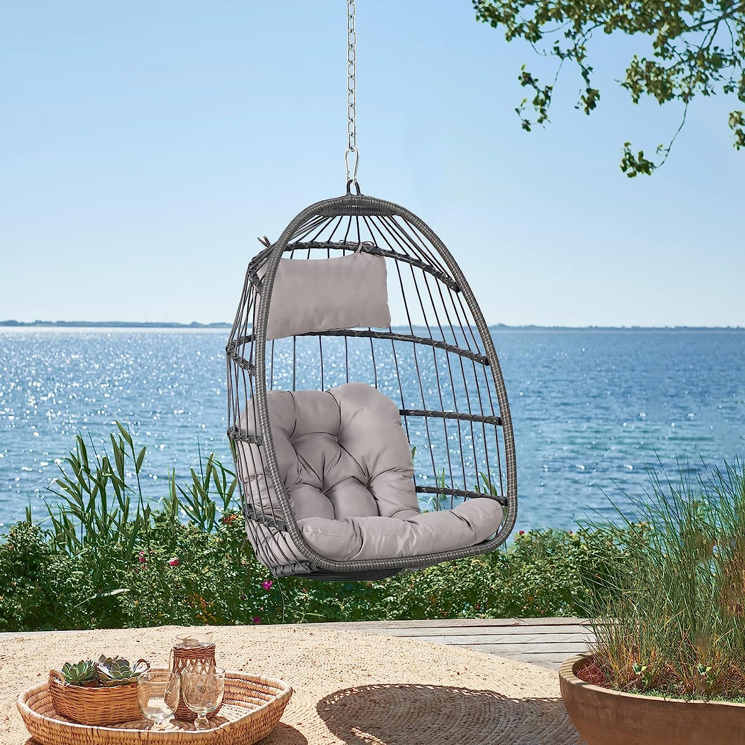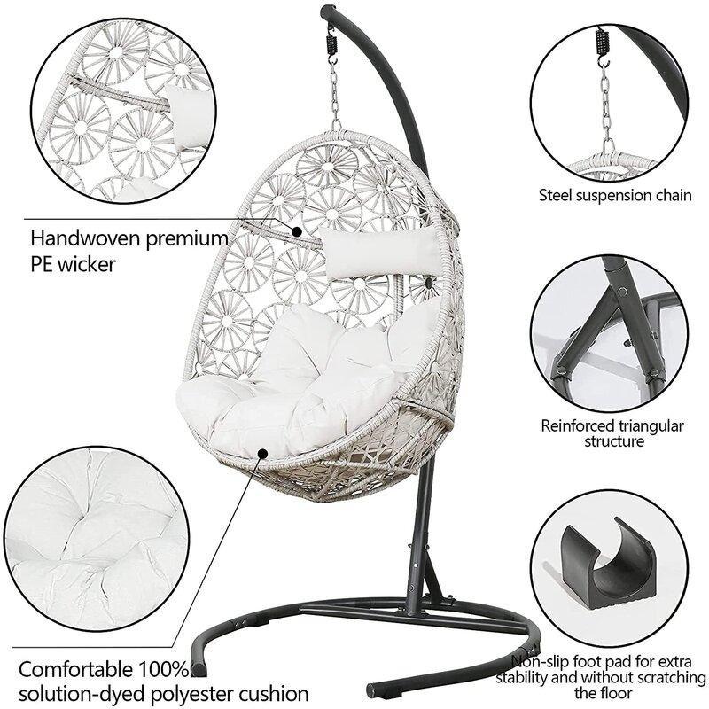 Mojia Patio Wicker Hanging Egg Swing Chair with Stand, Hammock Egg Chairs Foldable UV Resistant Cushions 440lbs Capaticy (Gray)