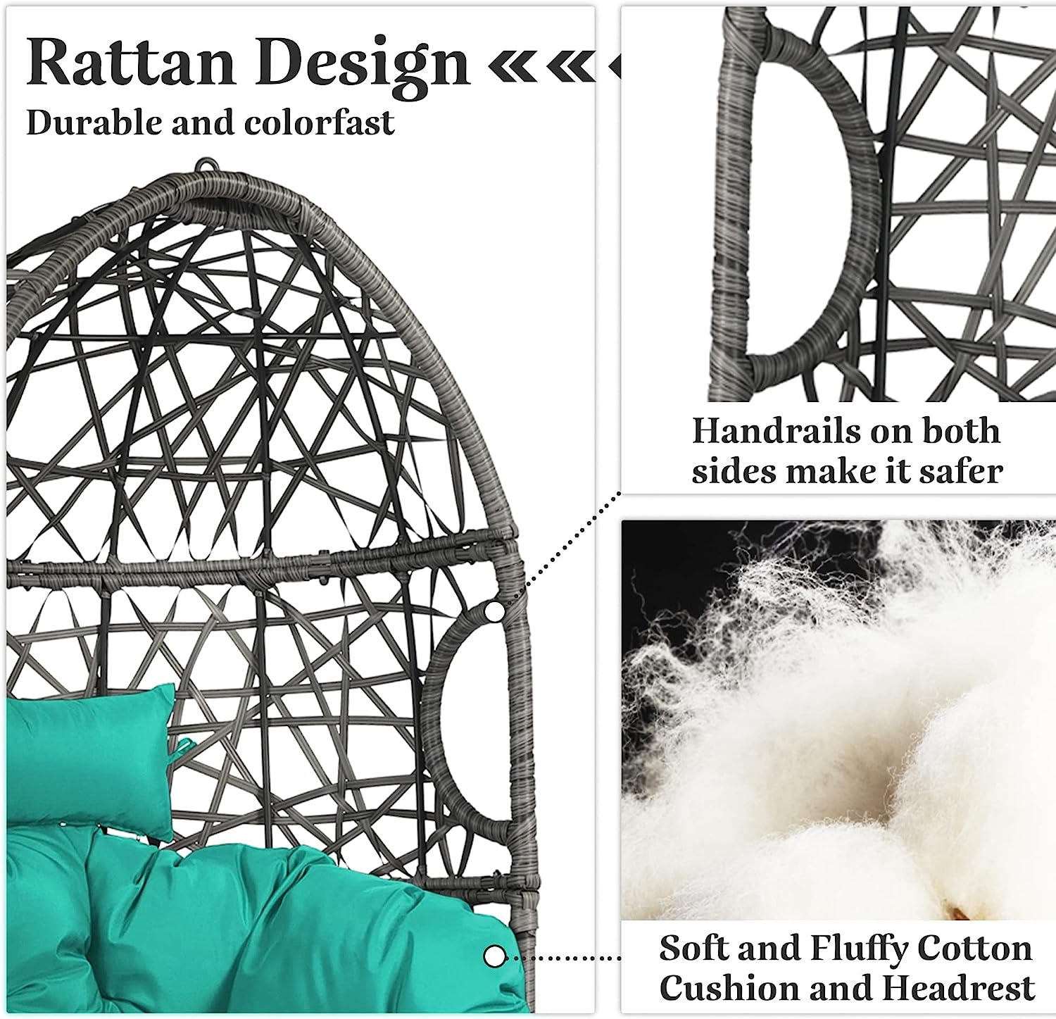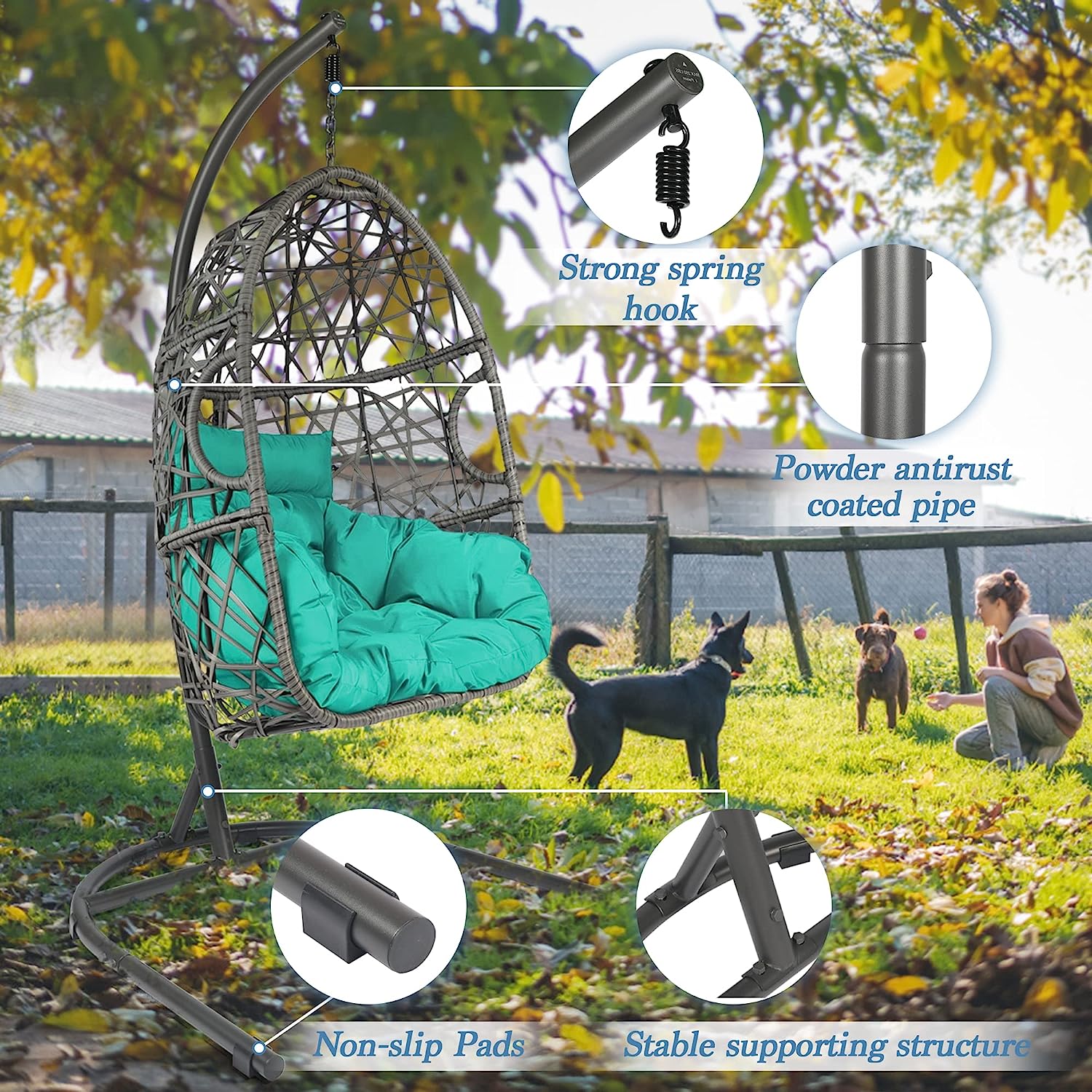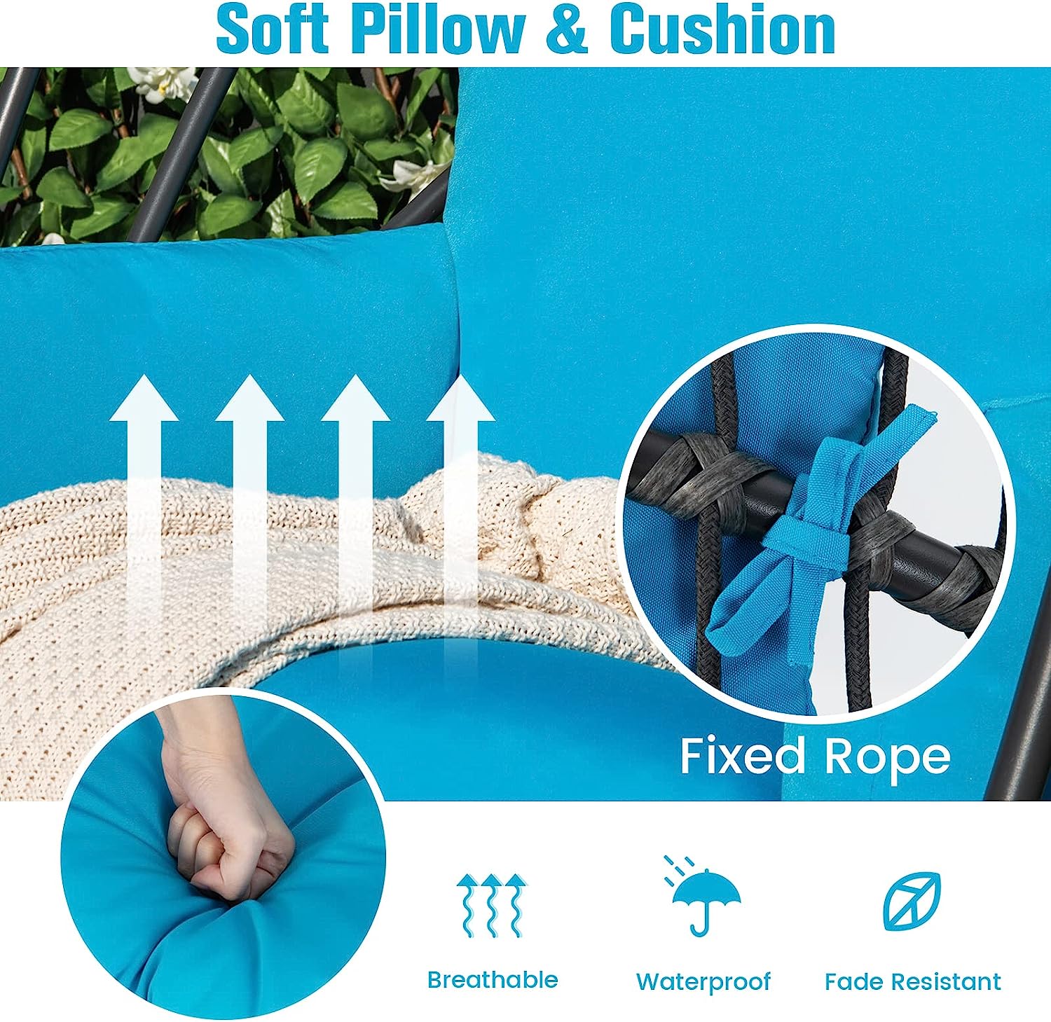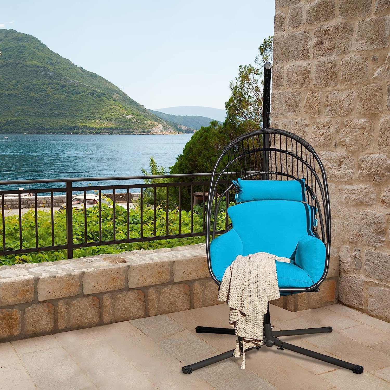 Giantex Egg Chair Hammock Stand - Hanging Swing with Stand, Folding Swinging Chair with Soft Cushion & Pillow, Wicker Rattan Hanging Chair for Bedroom,Garden, Patio Foldable Hammock Chair (Turquoise)