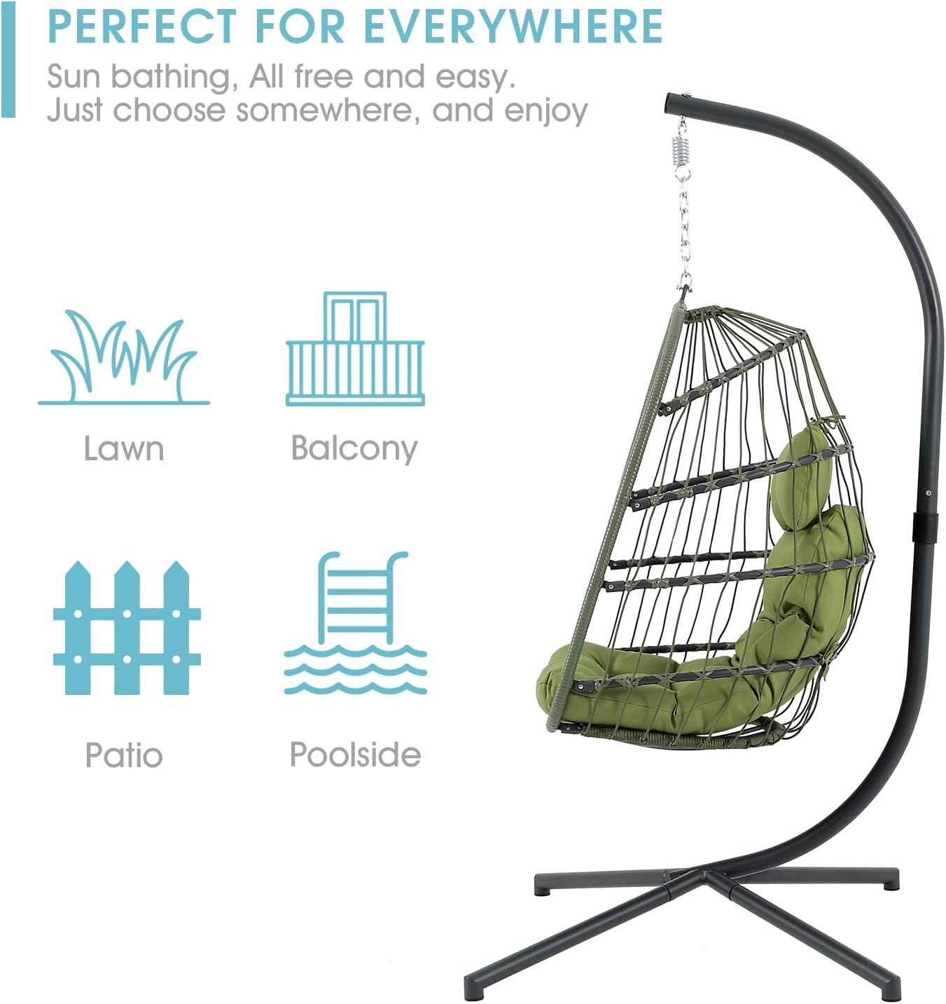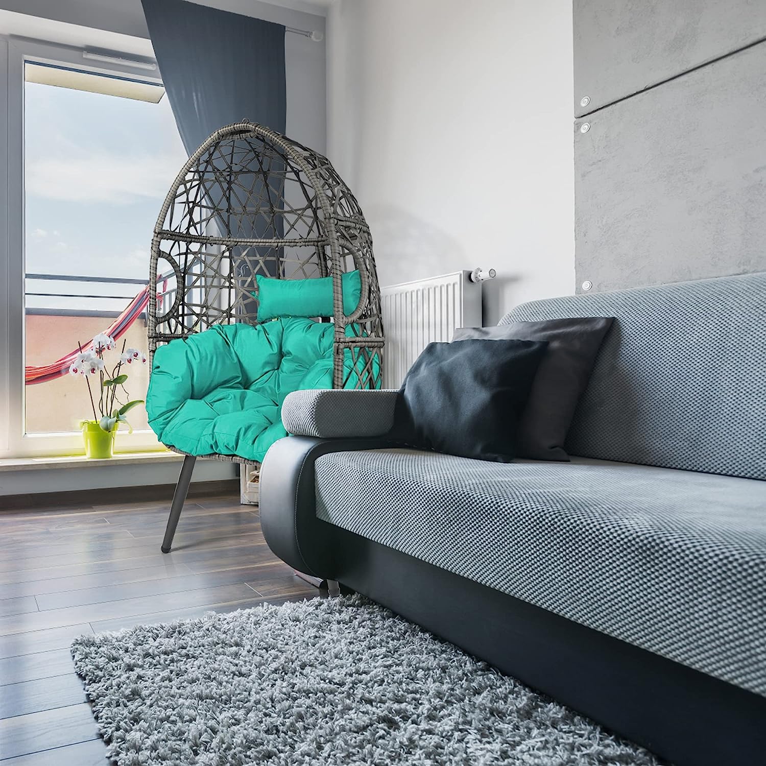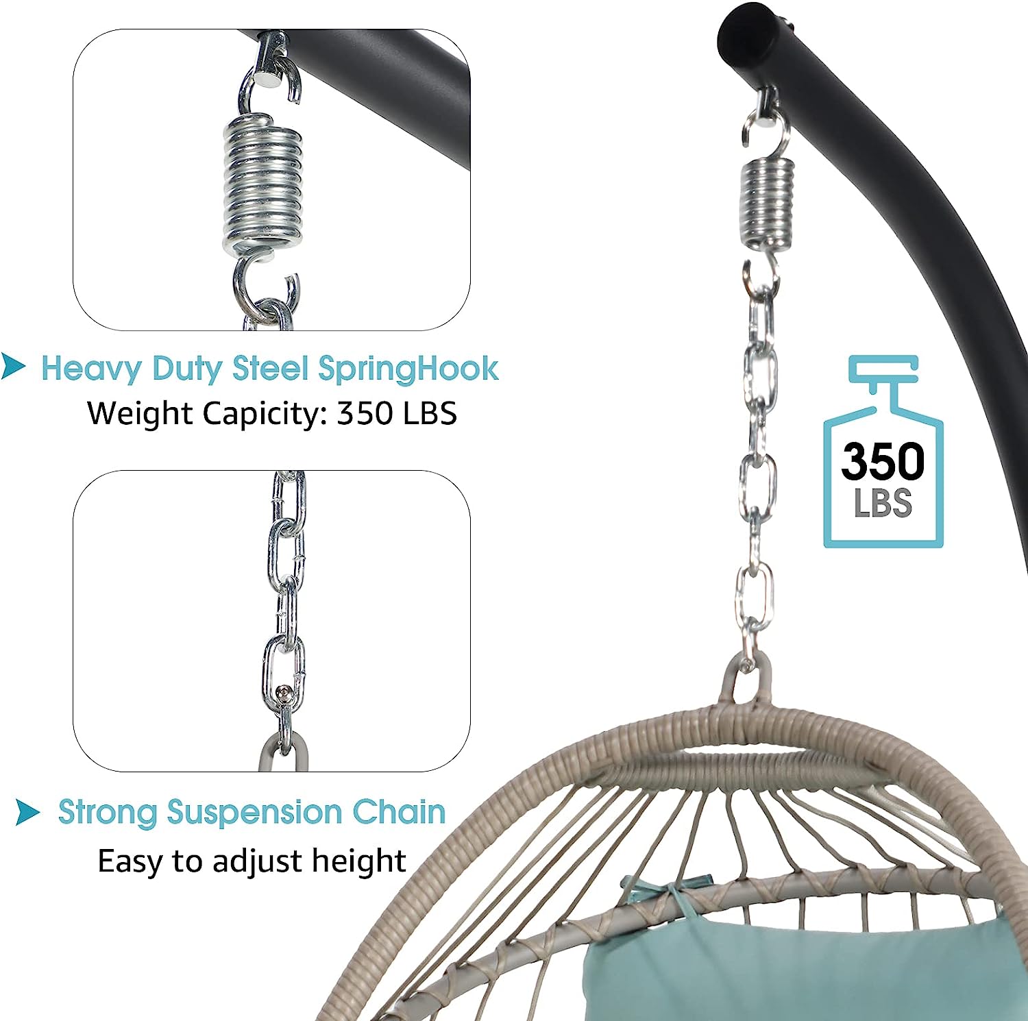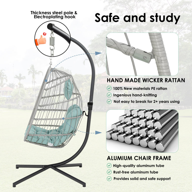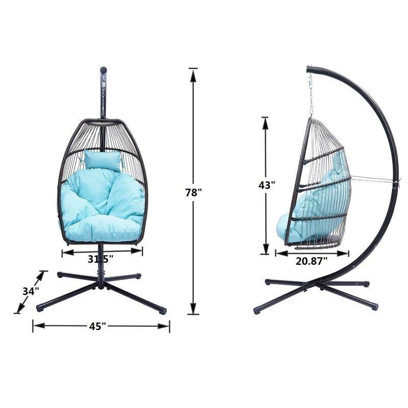 Giantex Egg Chair Hammock Stand - Hanging Swing with Stand, Folding Swinging Chair with Soft Cushion & Pillow, Wicker Rattan Hanging Chair for Bedroom,Garden, Patio Foldable Hammock Chair (Turquoise)