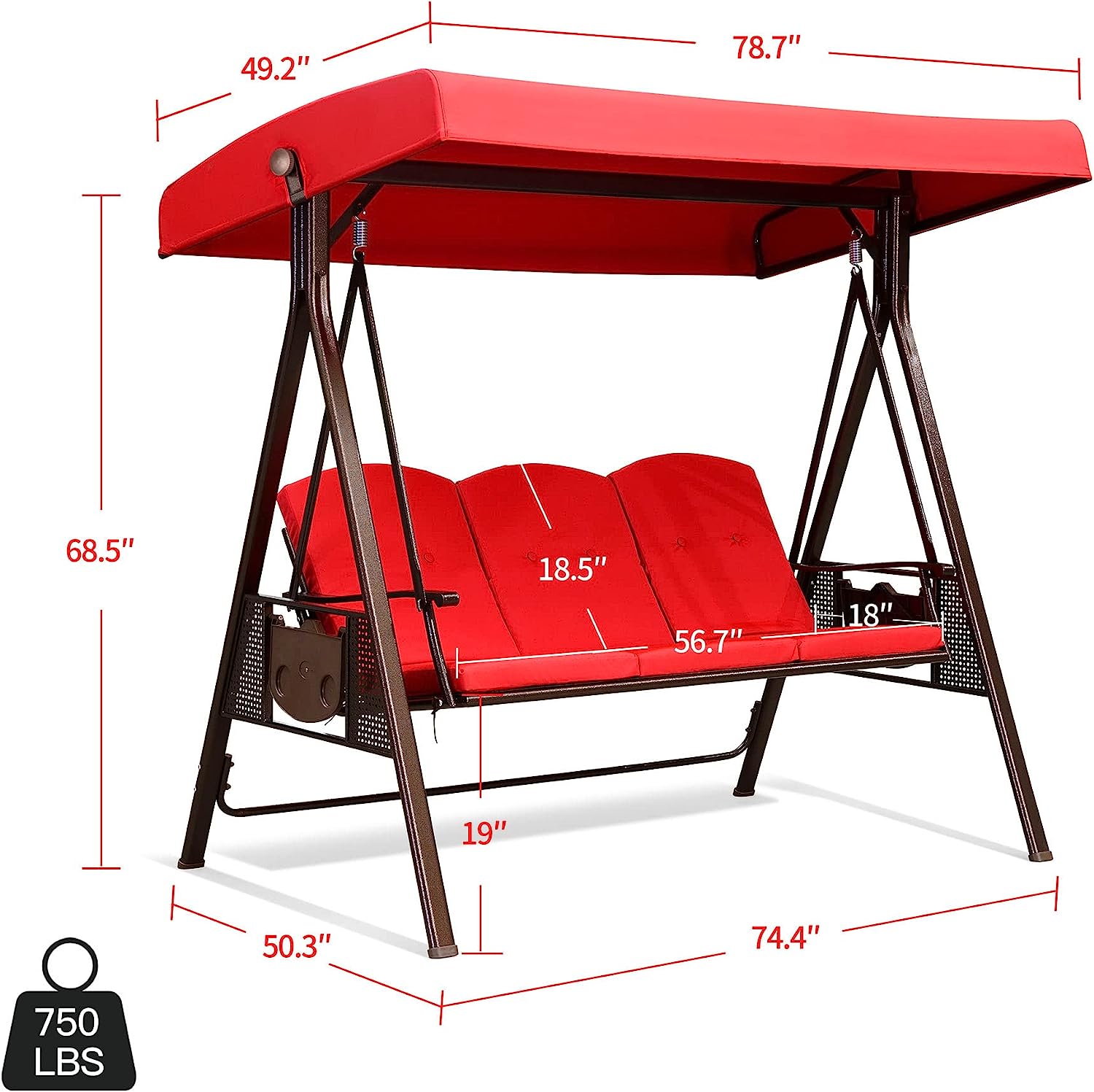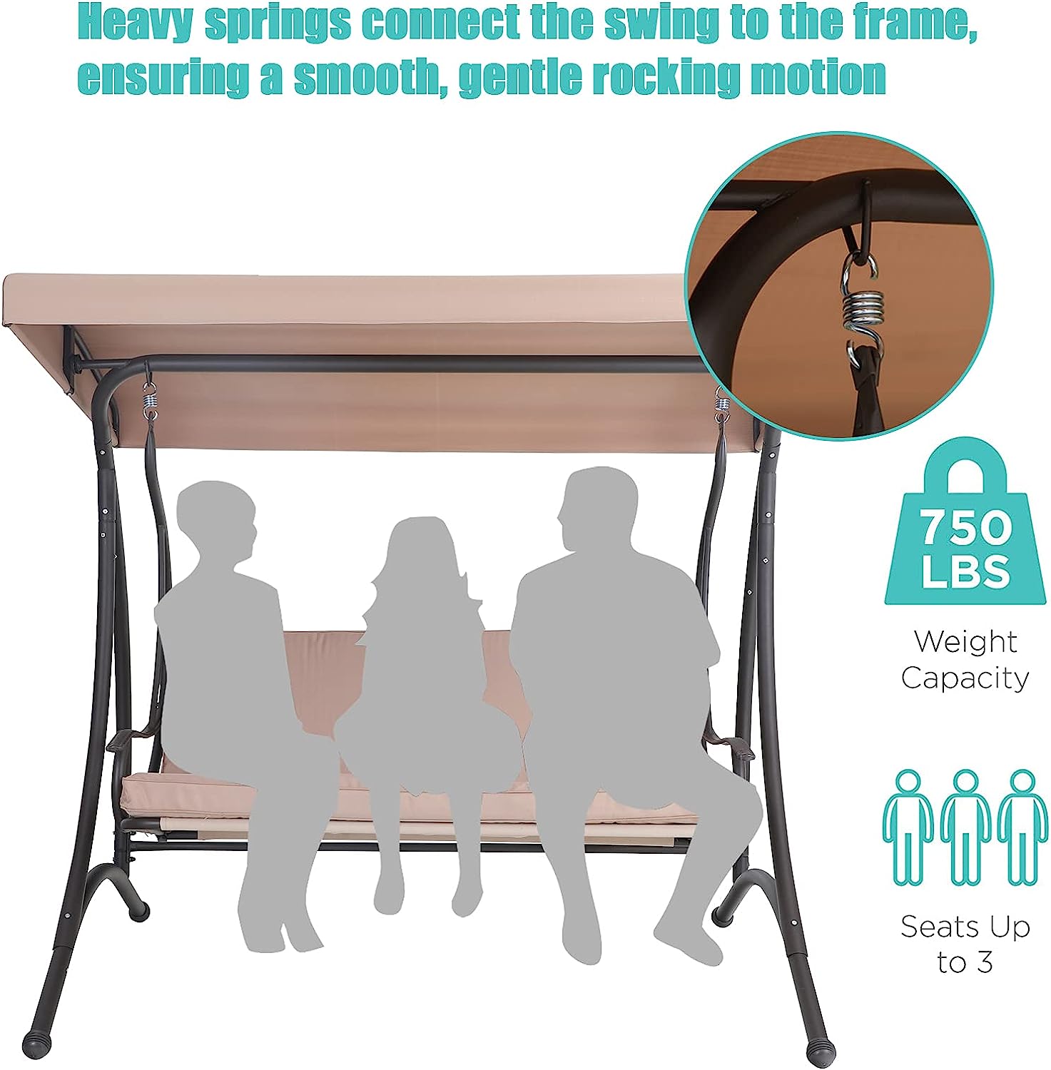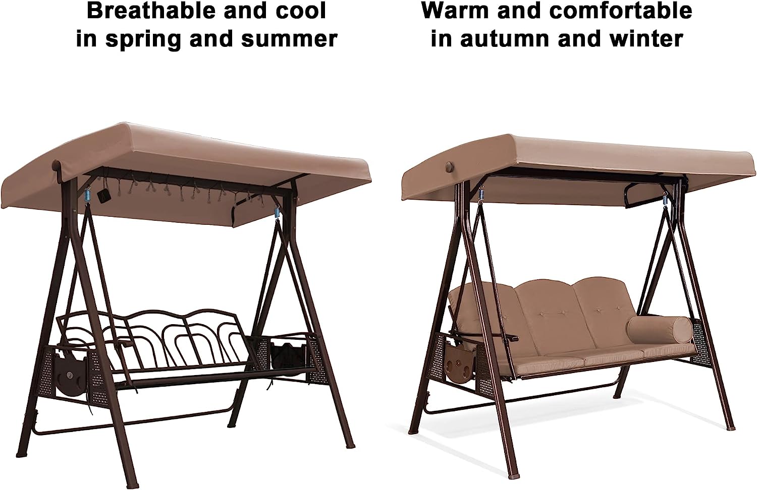 PURPLE LEAF 3-Seat Deluxe Outdoor Patio Porch Swing with Weather Resistant Steel Frame, Adjustable Tilt Canopy, Cushions and Pillow Included, Beige