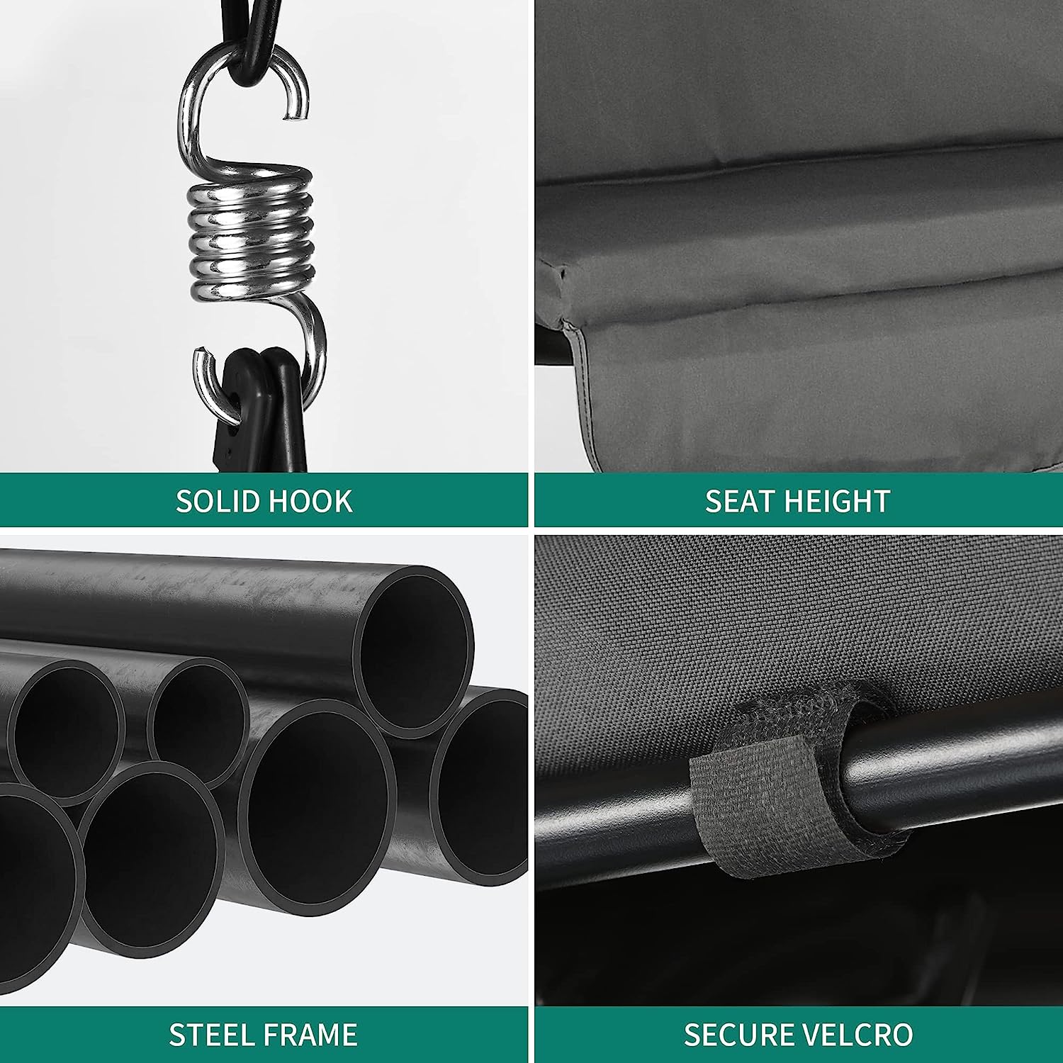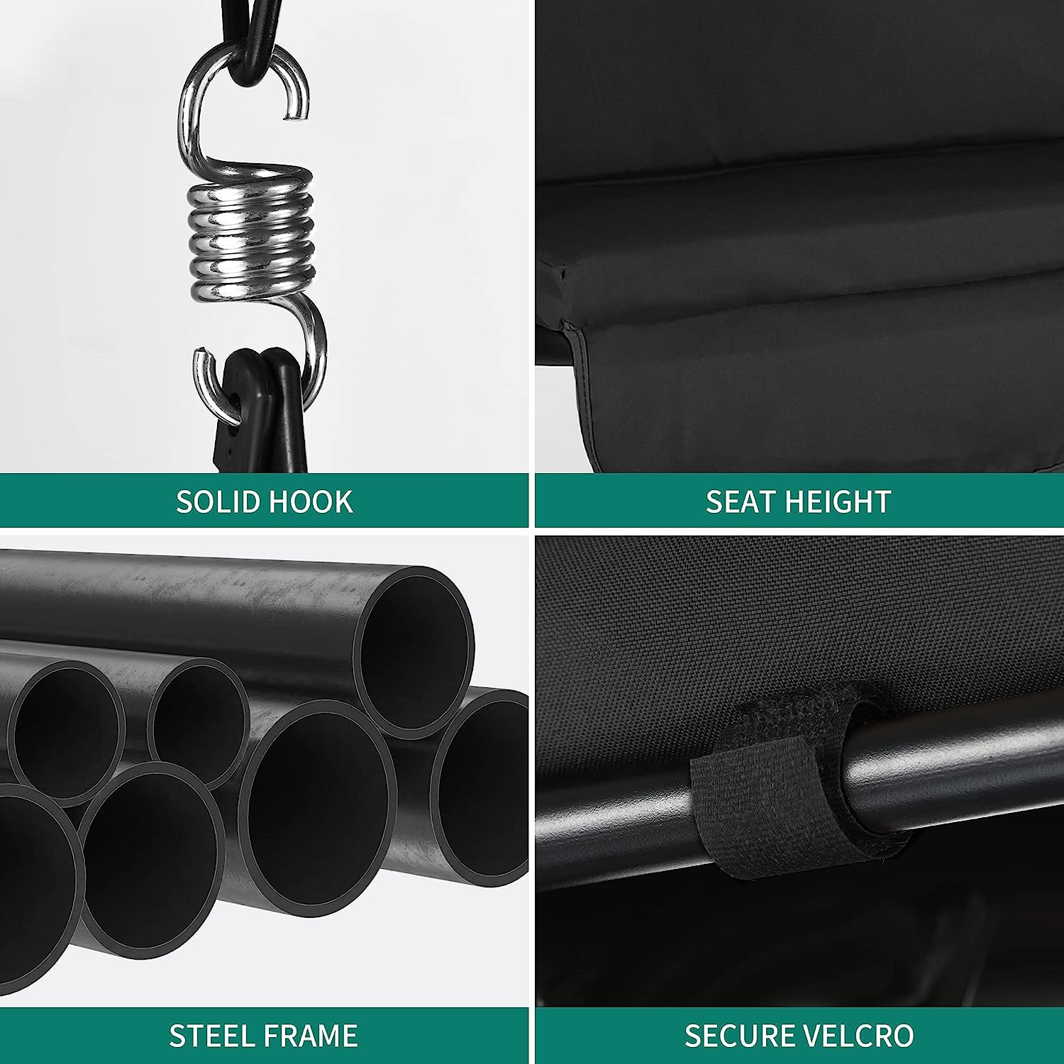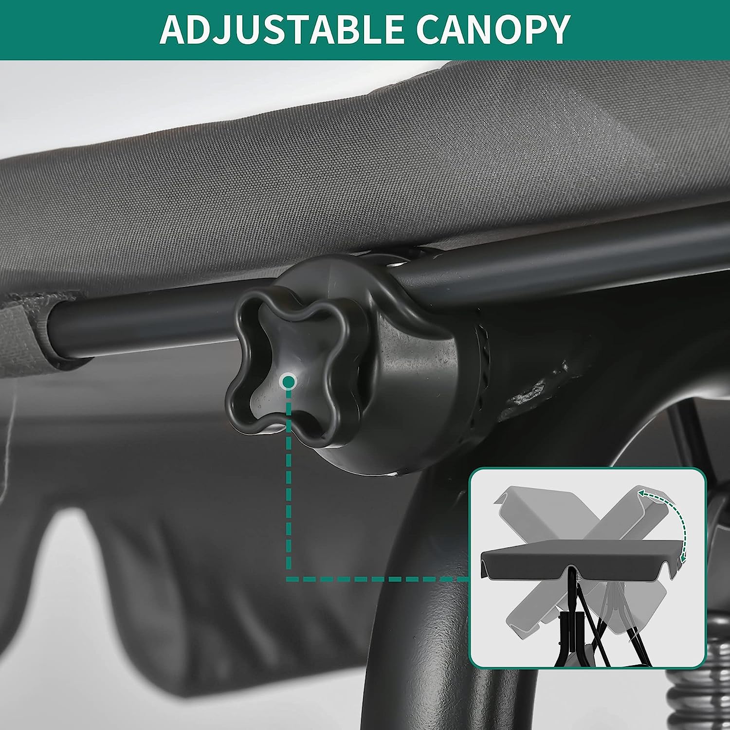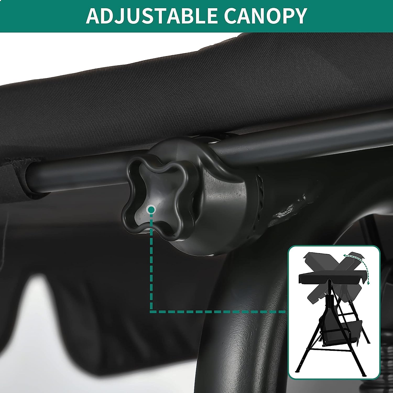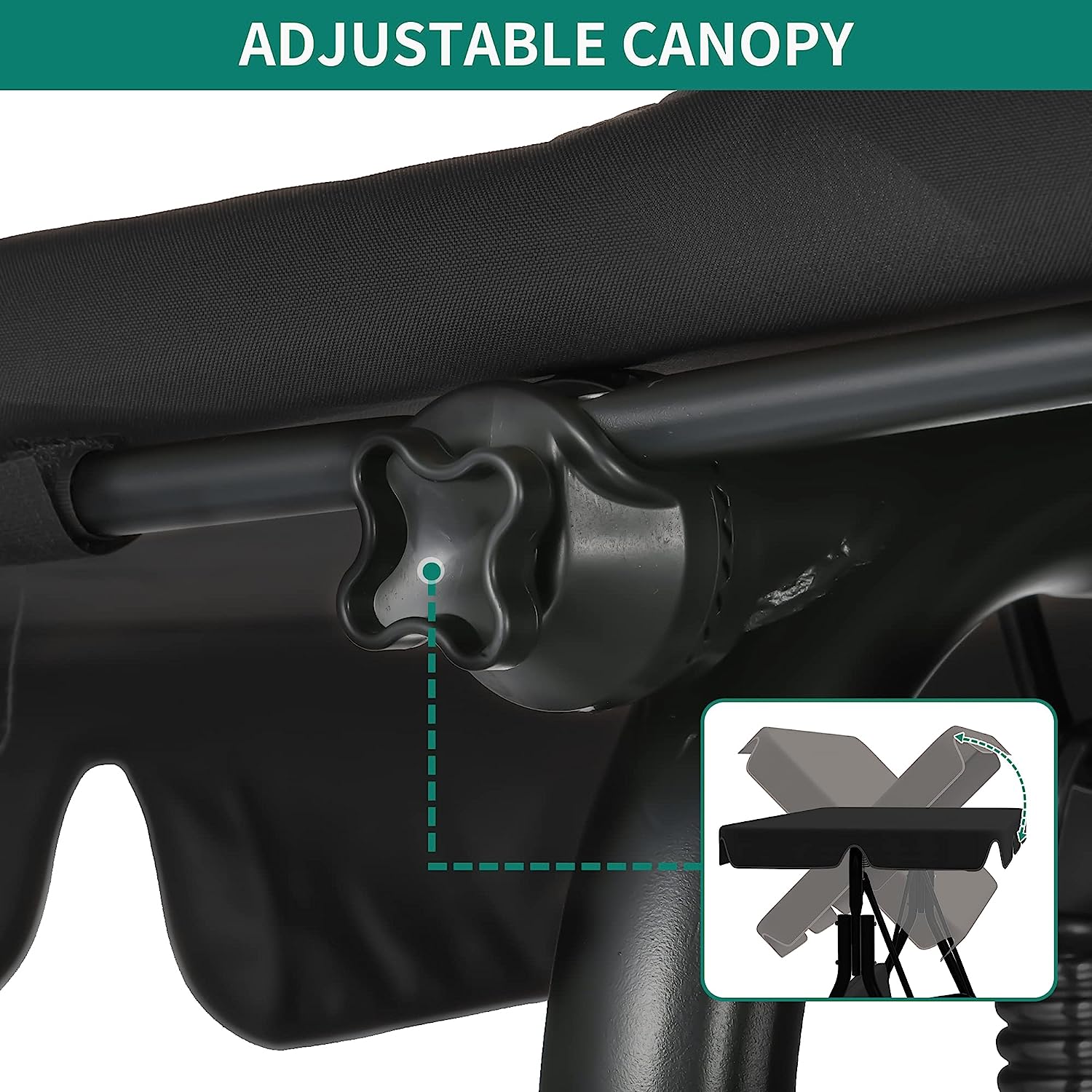 YITAHOME 3-Seat Porch Swing Outdoor Heavy Duty Patio Swing Chair with Stand Adjustable Canopy Soft Cushion for Garden, Patio, Lawn, Balcony and Deck, Black