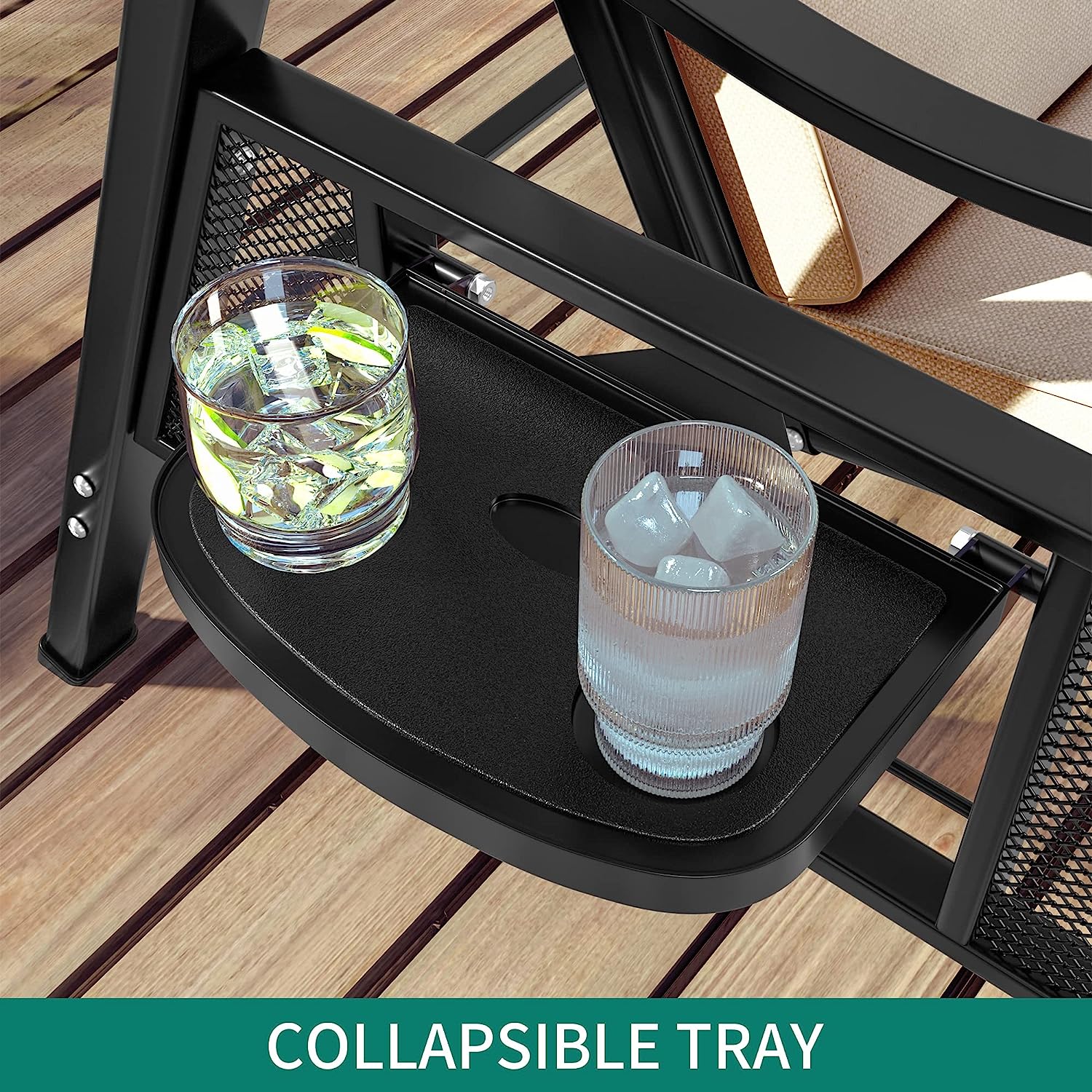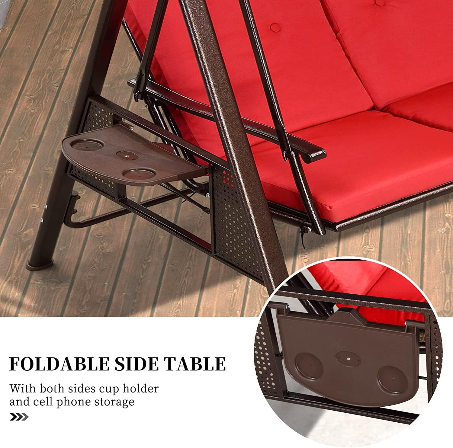 MFSTUDIO 3 Seat Patio Porch Swing, Outdoor Adjustable Canopy Swing Glider with Foldable Side Table and Removable Cushion for,Garden, Poolside, Balcony, Backyard (Beige) …