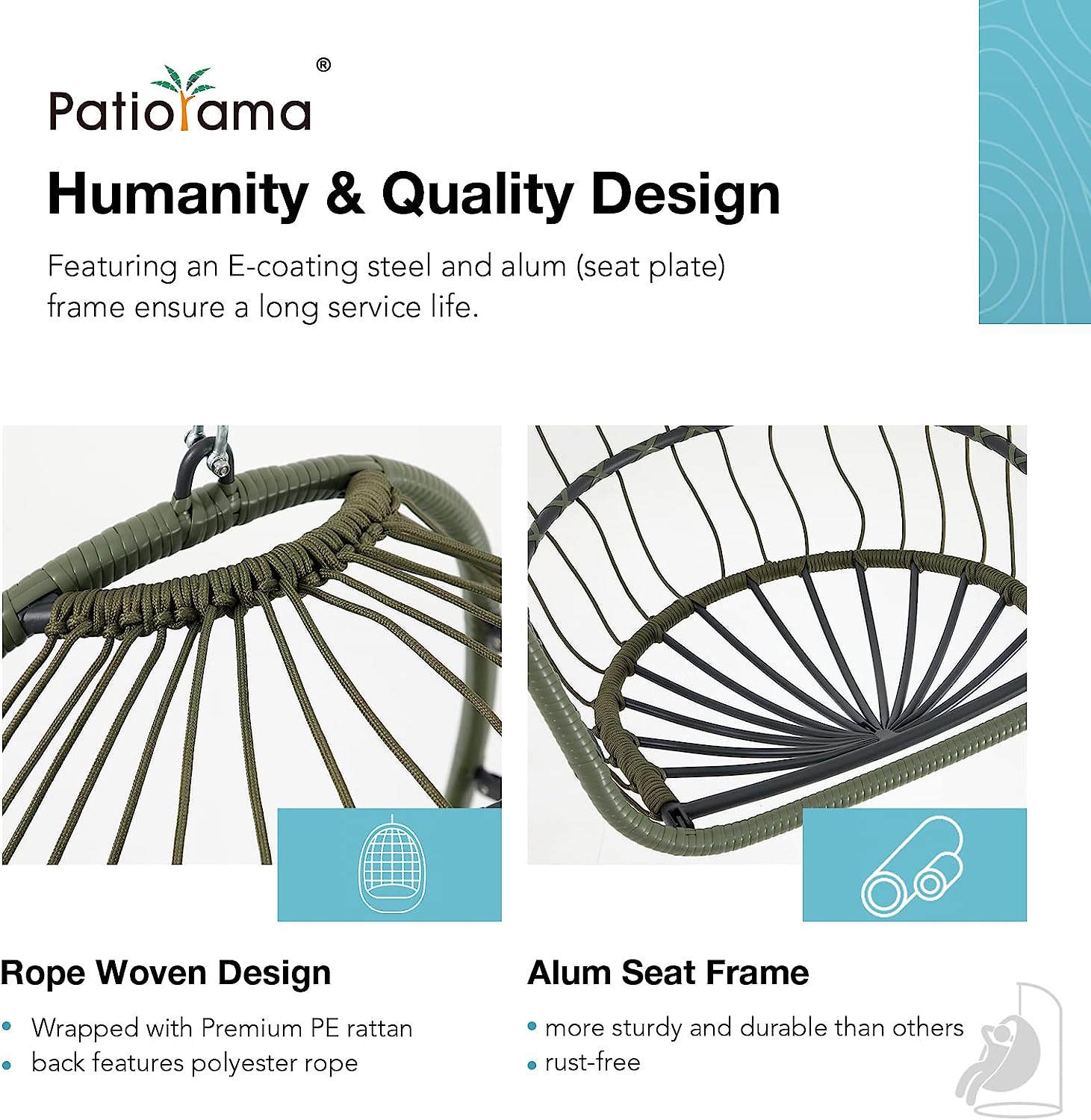 PRIVATE GARDEN Indoor Outdoor Hammock Egg Chair with Stand Large Hanging Chair Wicker Rattan Swing Chair with Removable Cushion 330LBS Capacity for Bedroom Patio Balcony
