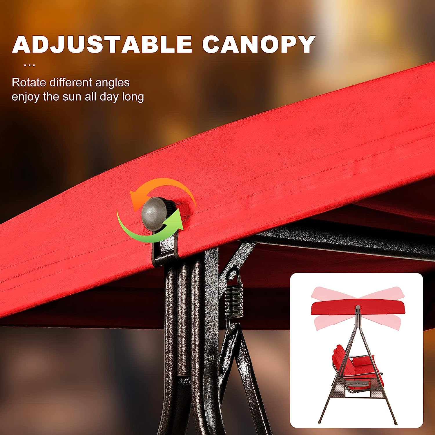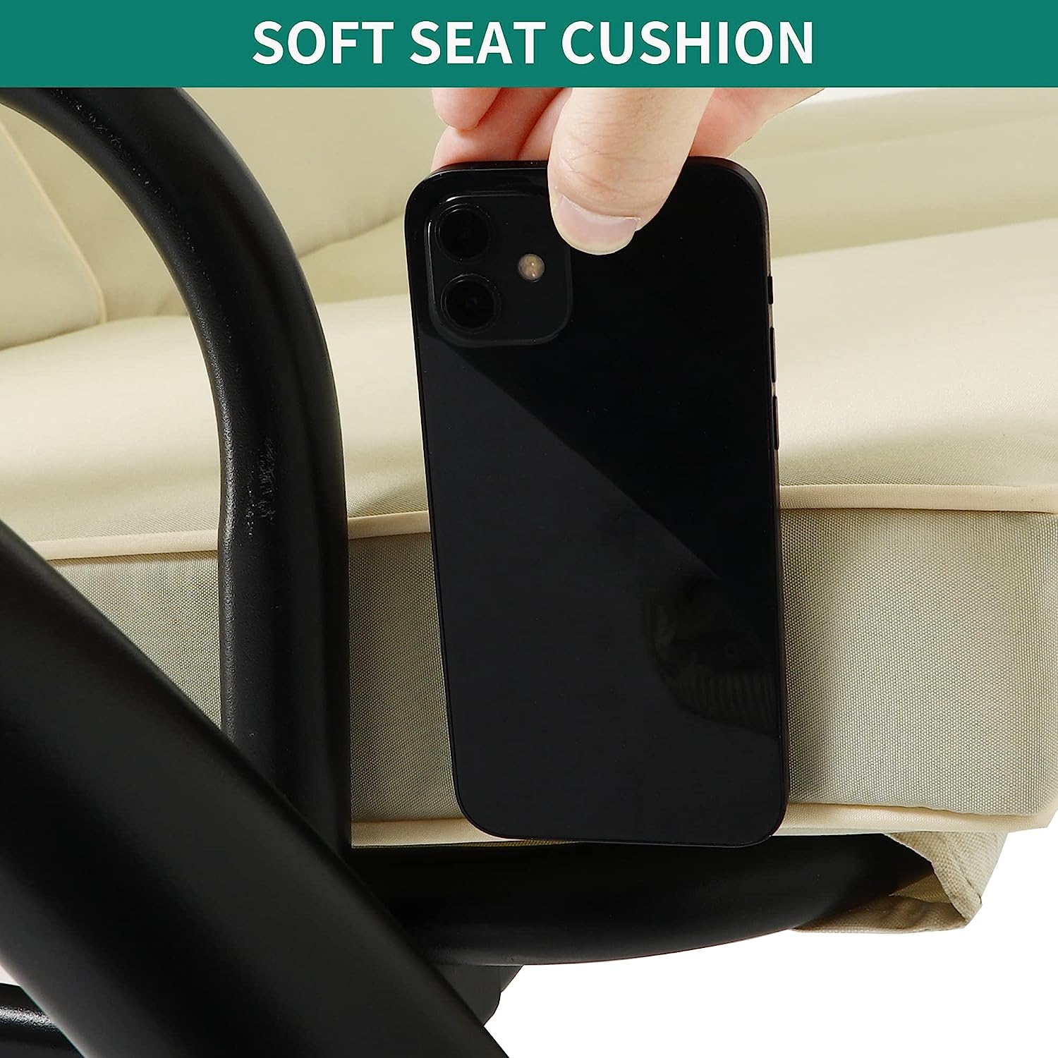 YITAHOME Outdoor Patio Swing Chair, 3 Person Porch Swing with Adjustable Canopy, Removable Cushion,Suitable for Garden, Poolside, Balcony,(Beige)