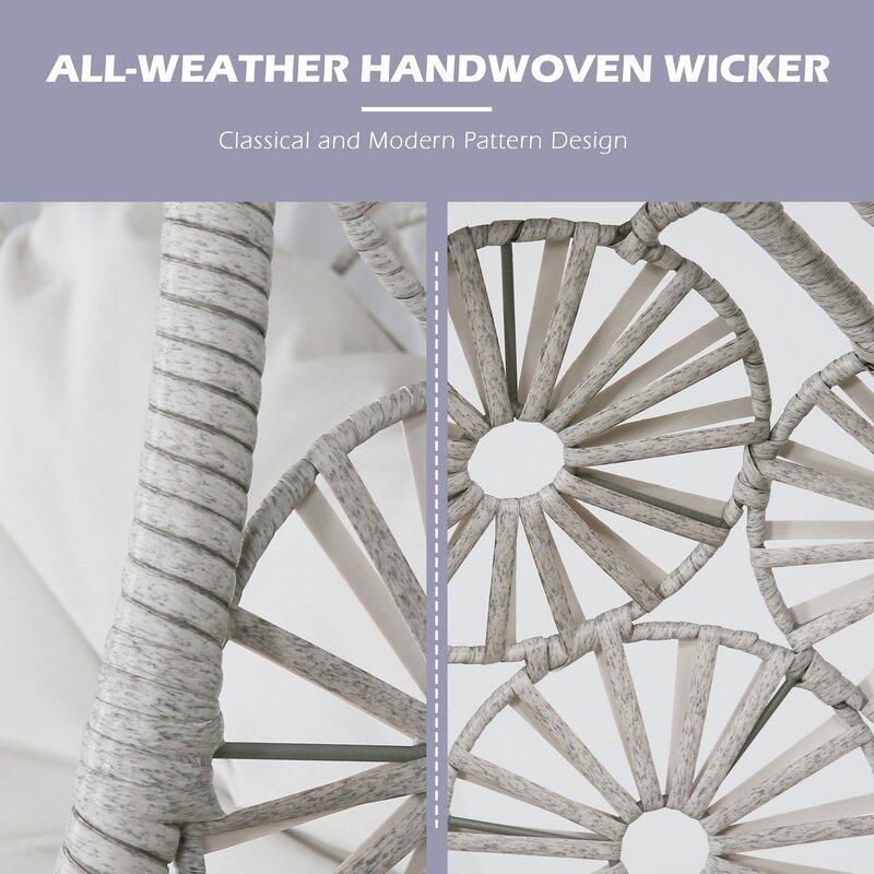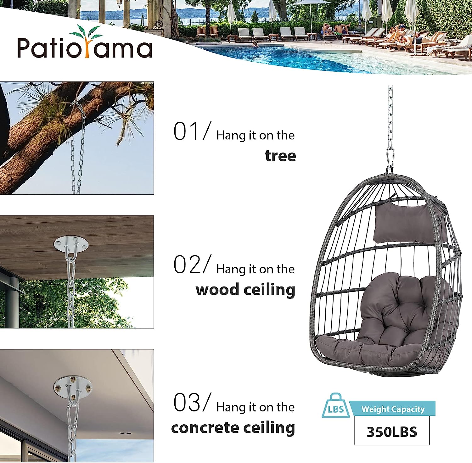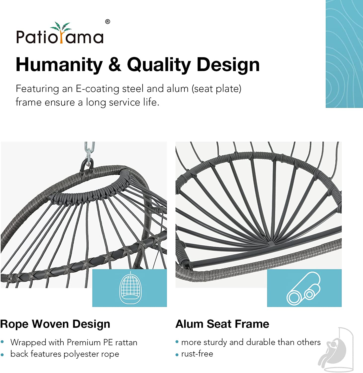 Patiorama Indoor Outdoor Egg Swing Chair with Stand, Patio Grey Wicker Rattan Hanging Chair with Rope Back, Cushion,Cover,All Weather Foldable Hammock Chair for Bedroom, Garden (Light Grey)