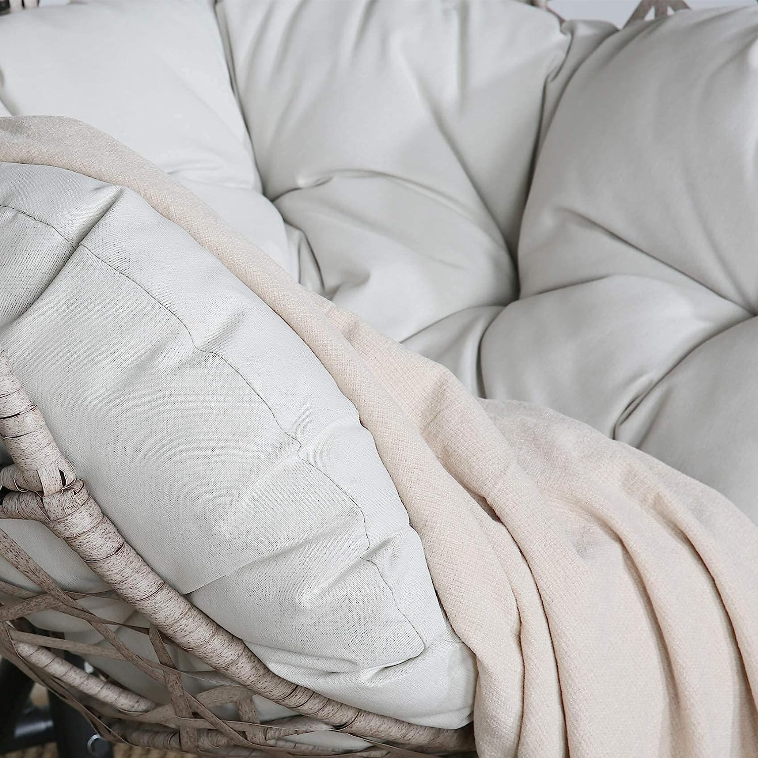 RADIATA Double Egg Chair with Stand Luxury Outdoor Patio Wicker Loveseat Hanging Swing Egg Chairs with Resistant Cushions Metal Frame 500 lbs Capaticy for 2 Persons Patio Backyard Balcony