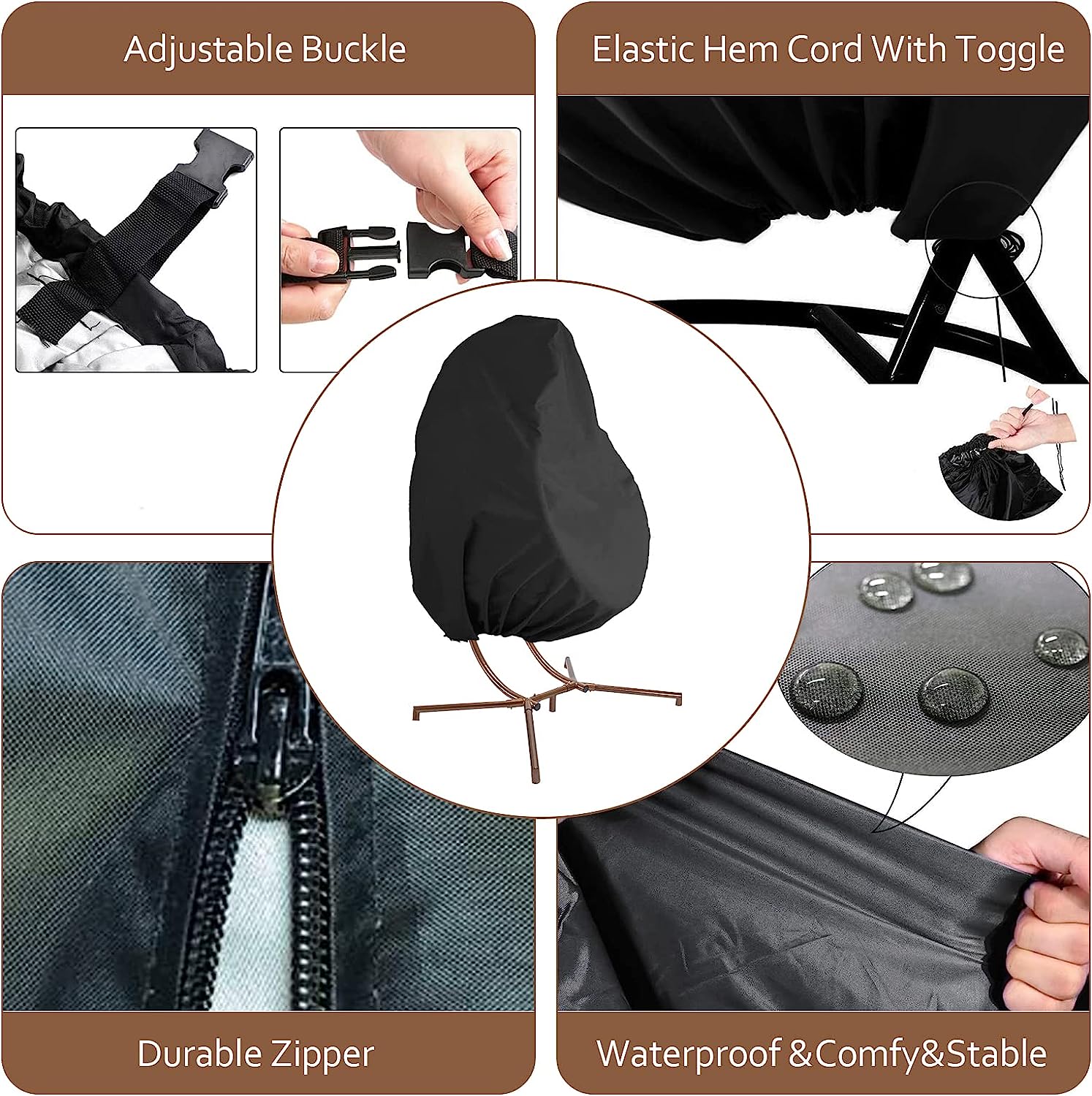 Avenlur Outdoor Patio Hanging Chair - Hammock Swing Egg Chair with Stand, Indoor/Outdoor Hanging Chair for Patio Bedroom Balcony (Black)