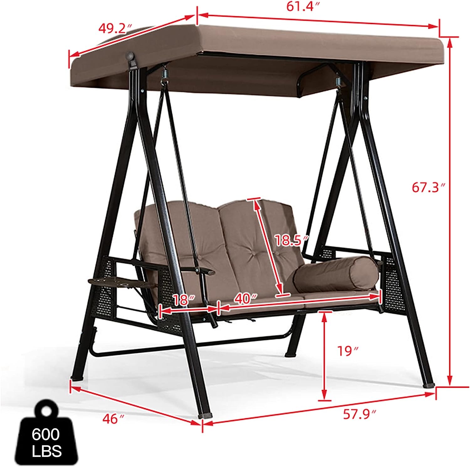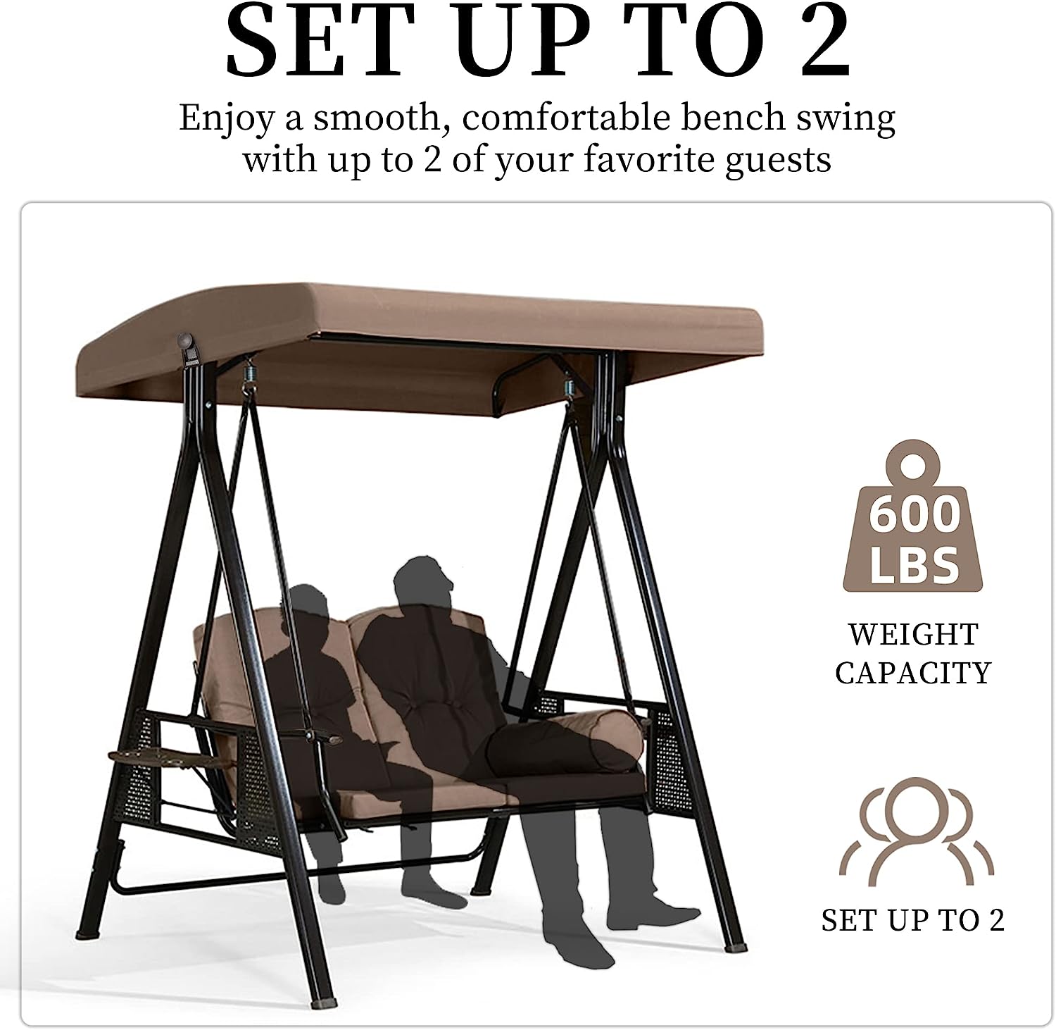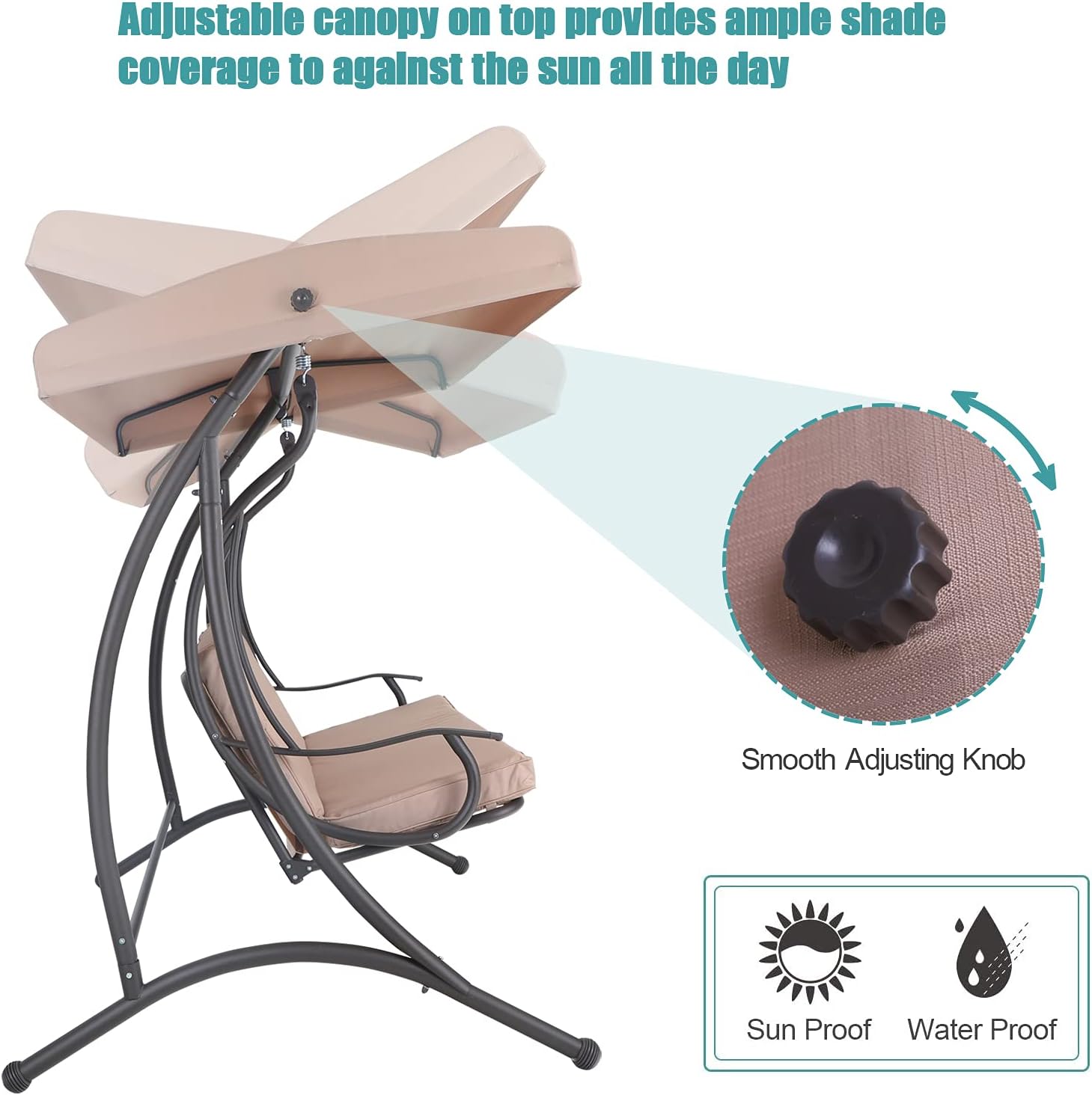 PURPLE LEAF 2-Seat Deluxe Outdoor Patio Porch Swing with Weather Resistant Steel Frame, Adjustable Tilt Canopy, Cushions and Pillow Included, Beige