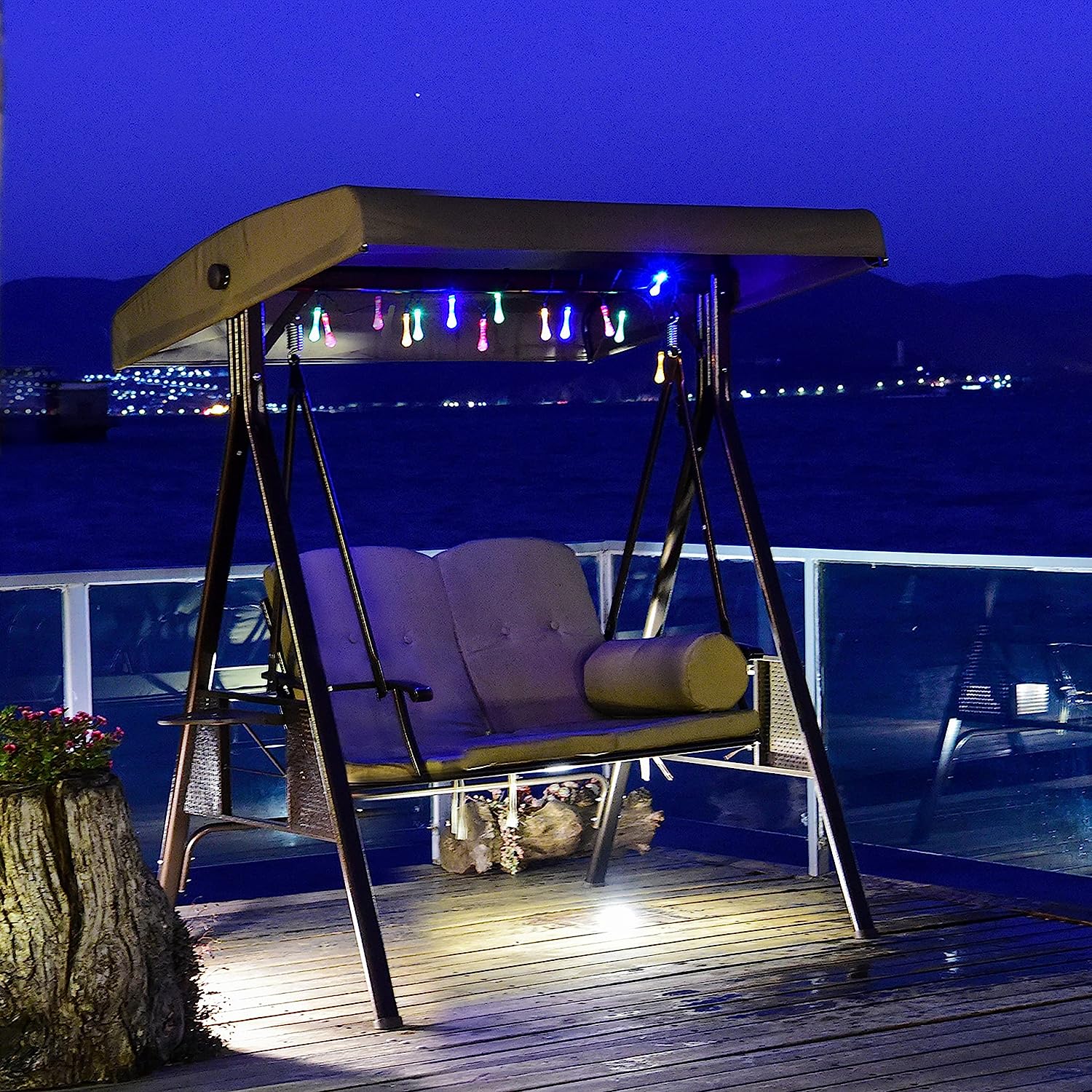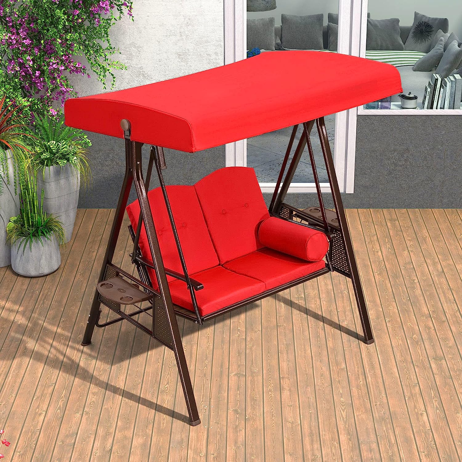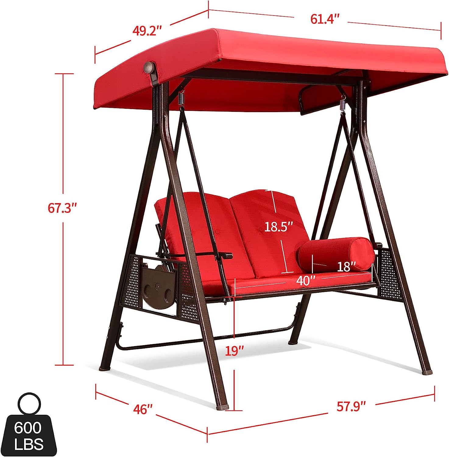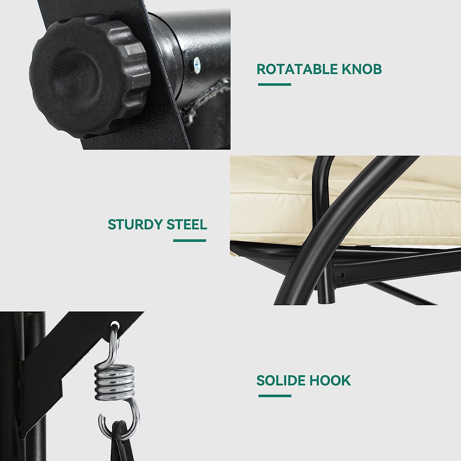 PURPLE LEAF 2-Seat Deluxe Outdoor Patio Porch Swing with Weather Resistant Steel Frame, Adjustable Tilt Canopy, Cushions and Pillow Included, Beige