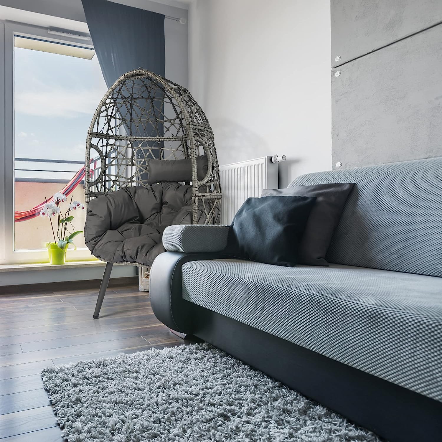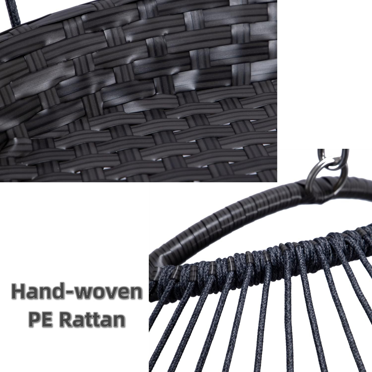 Egg Chair with Stand - Patio Rattan Wicker Hanging Swing Egg Chair Hammock Chair for Indoor Outdoor Bedroom Garden - Aluminum Steel Frame and UV Resistant Cushion 350LBS Capacity (Dark Grey)