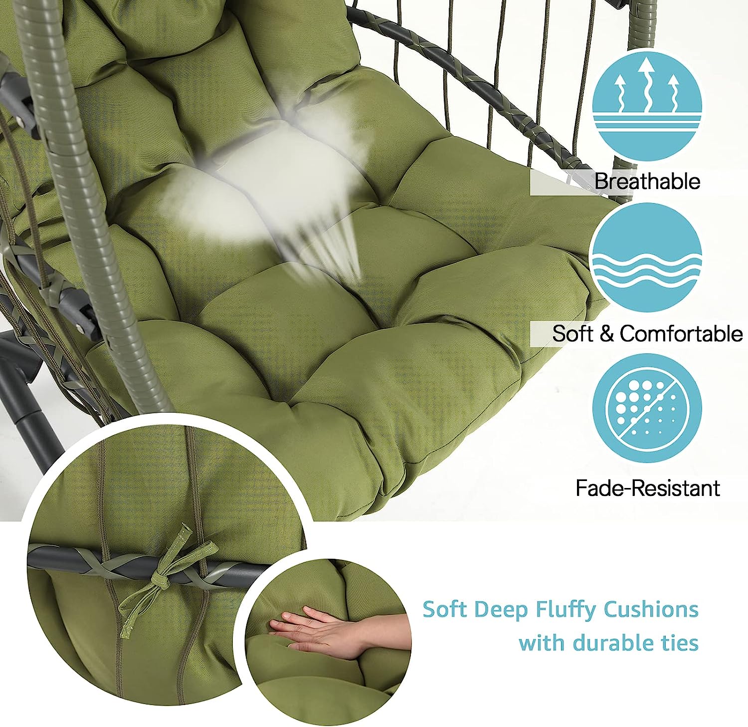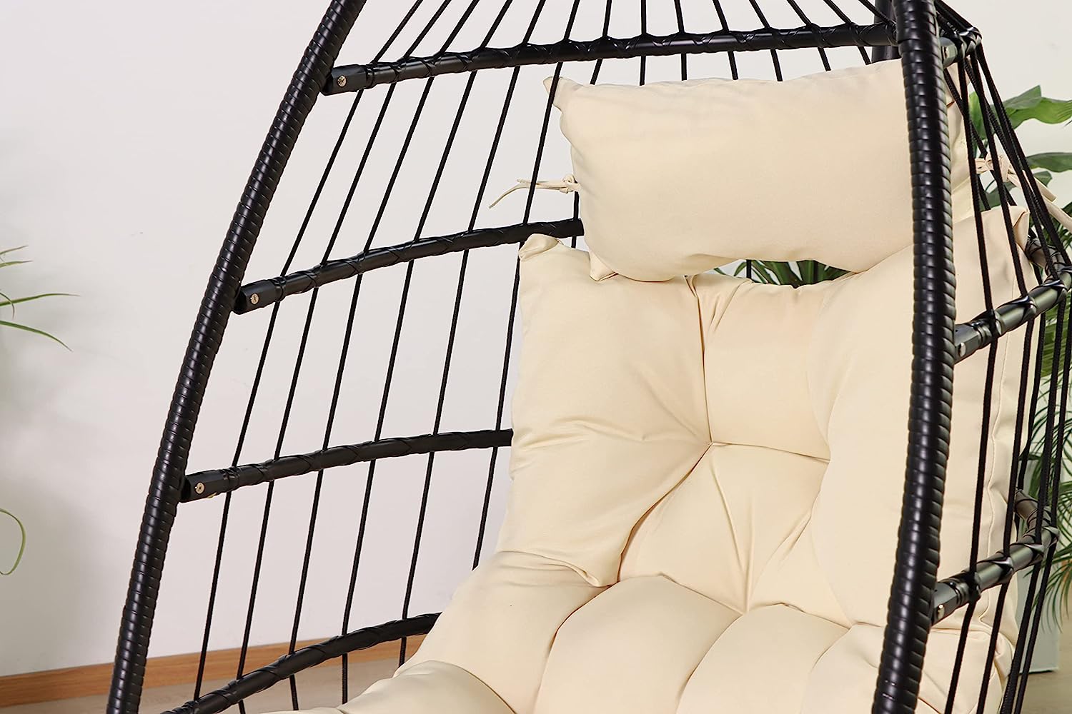 HOPUBUY Hammock Chair Egg Chair with Stand, Hanging Chair with Cushion and Pillow, Rattan Egg Swing Chair for Outdoor Indoor Bedroom, Porch, Balcony, Tree (C-Stand not Included)