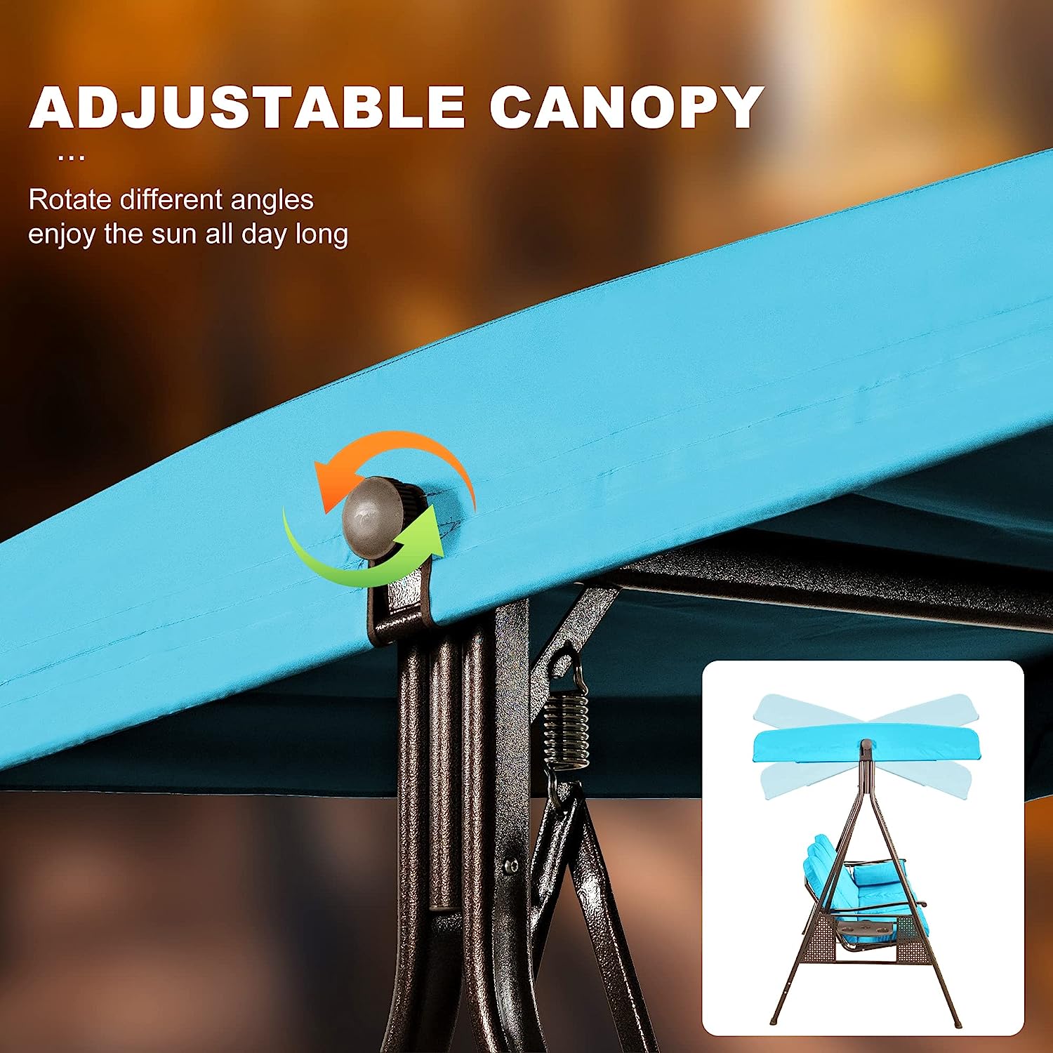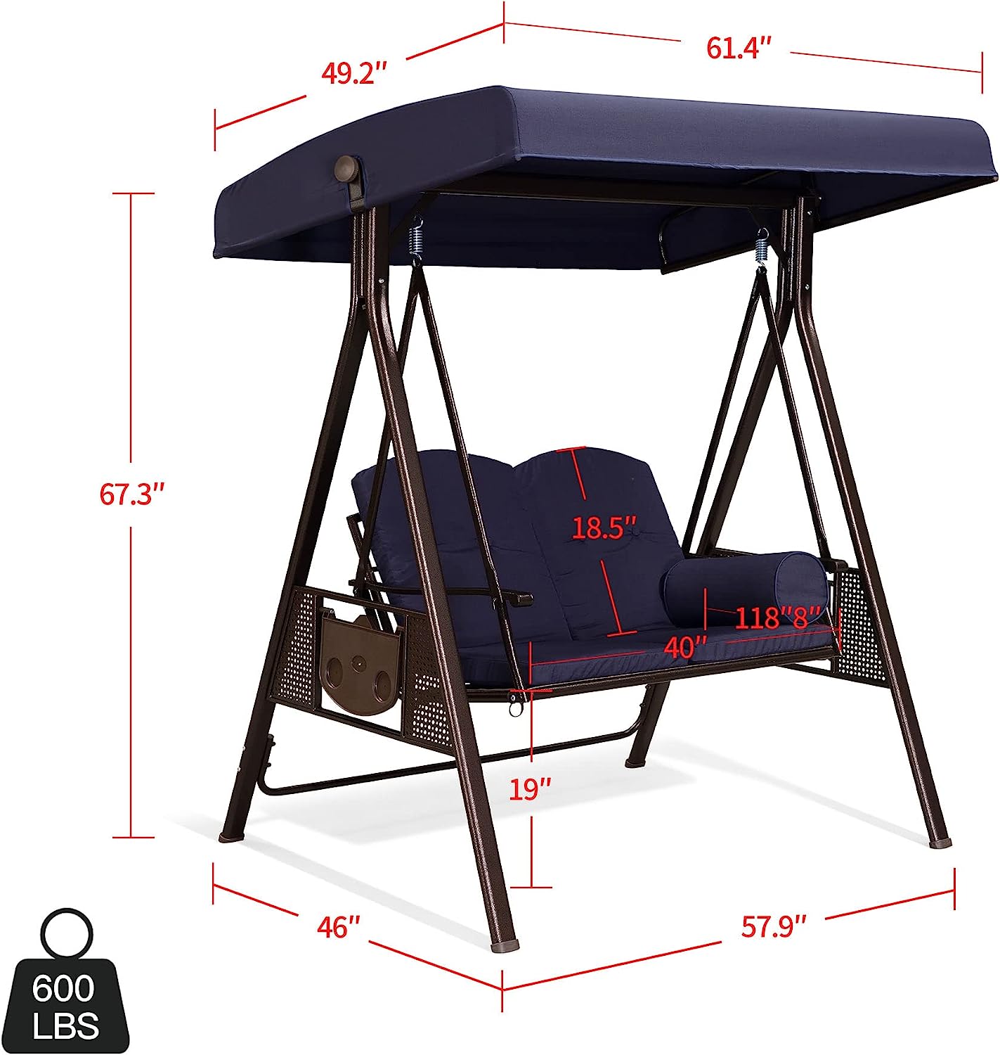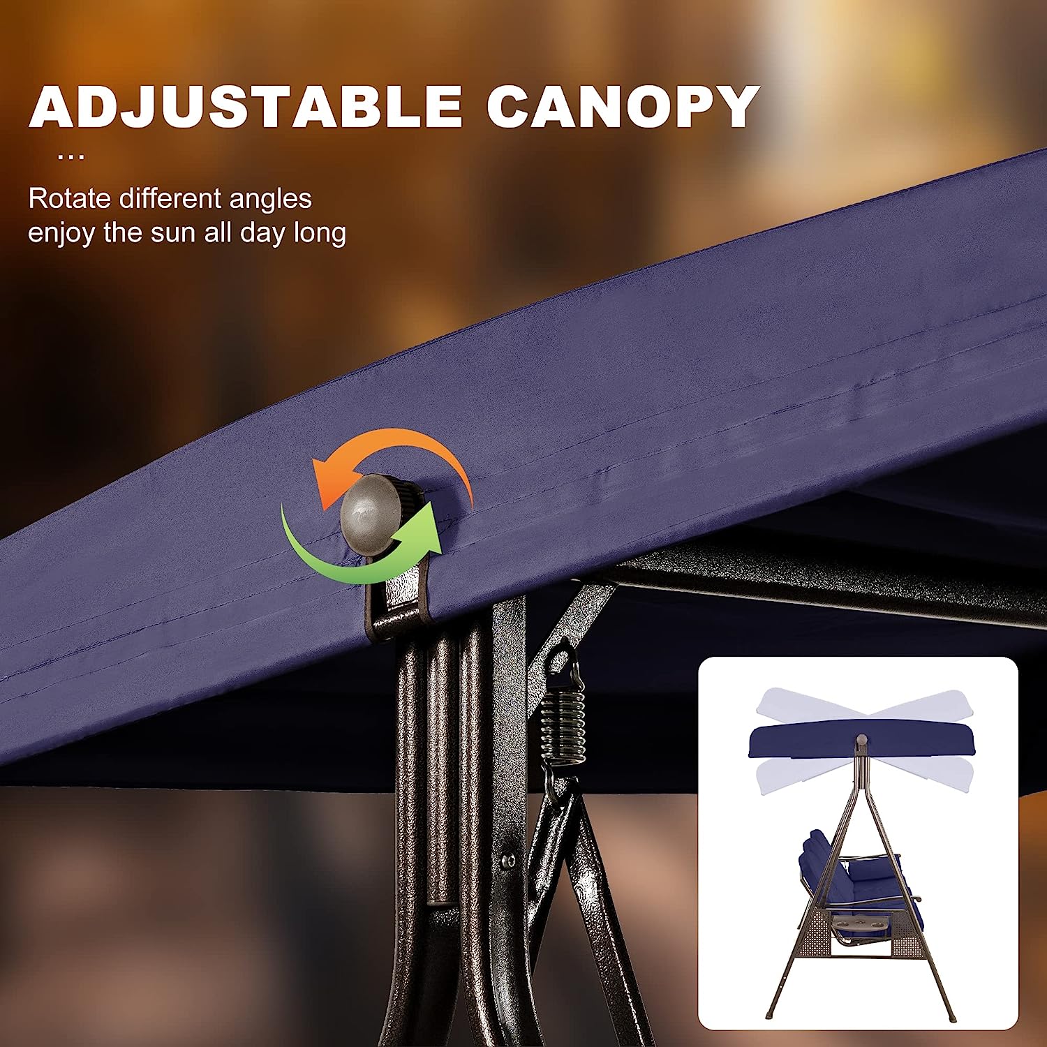 YITAHOME 3-Seat Deluxe Porch Swing Outdoor Heavy Duty Patio Swing Chair with Adjustable Canopy Removable Cushions Weather Resistant Steel Frame Suitable for Garden, Lawn, Backyard, Balcony, Navy Blue