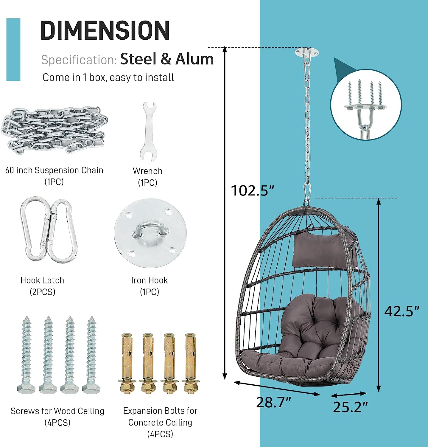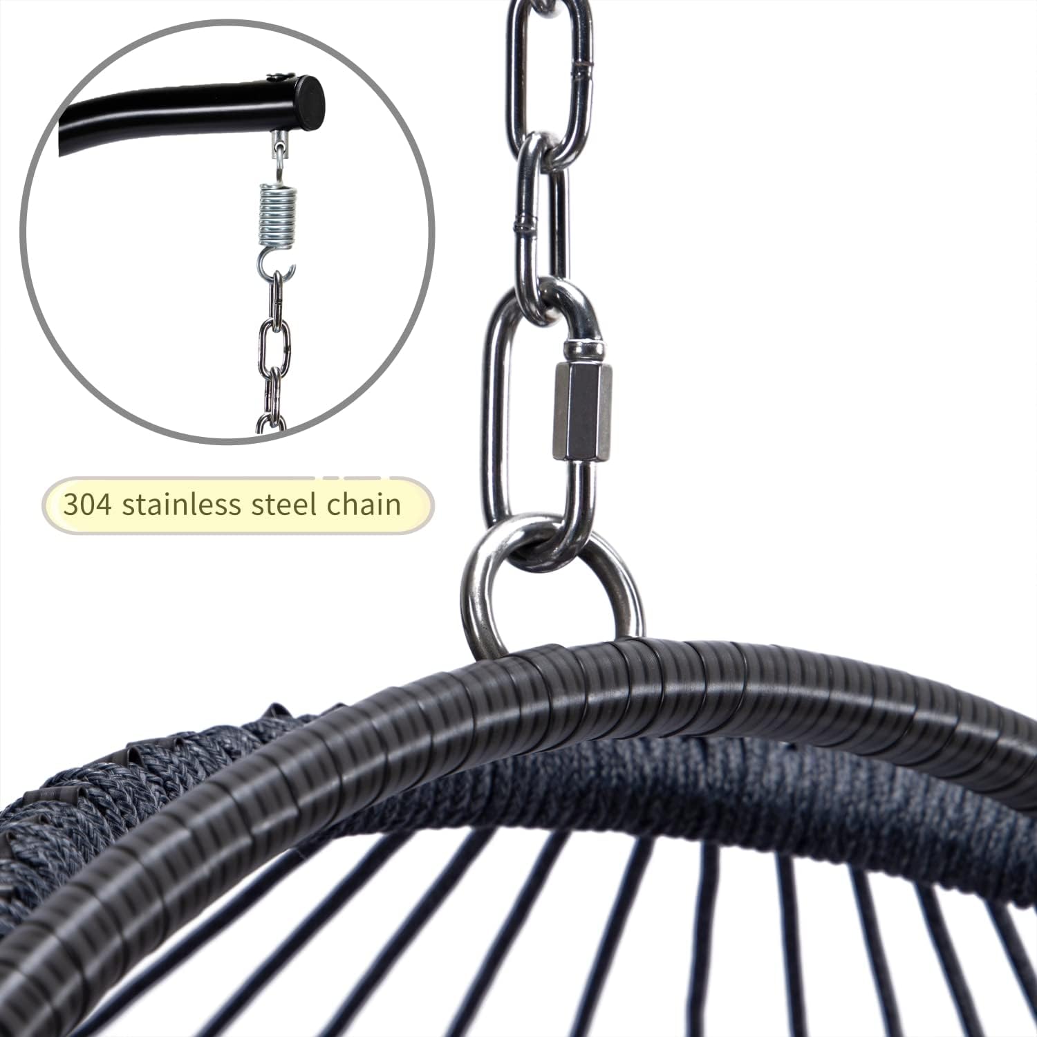 Patio Hanging Chair Swing Hammock Basket Egg Chairs UV Resistant Cushions with Aluminum Frame 350lbs Capaticy for Indoor Outdoor Backyard Balcony (Grey)