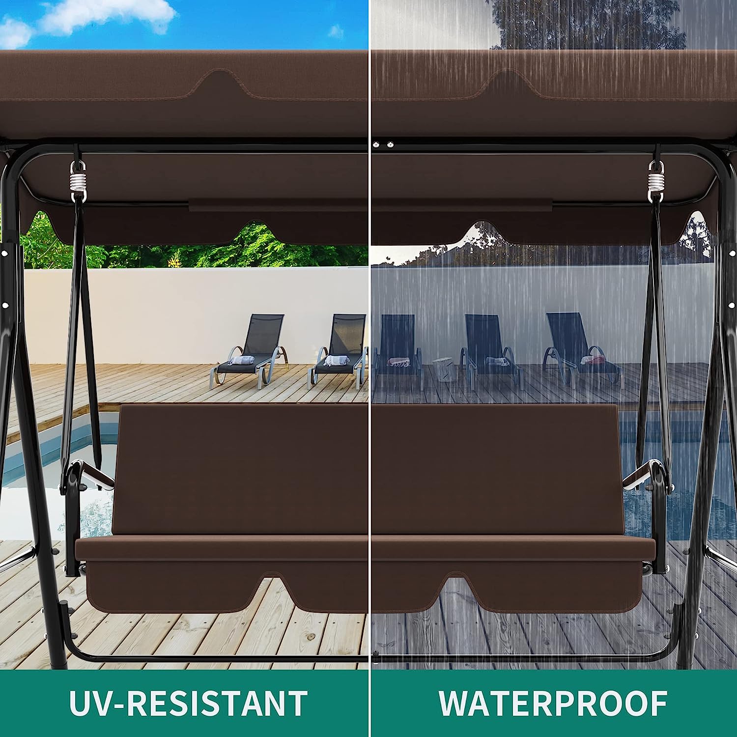 YITAHOME Porch Swing Bed 3-Seats Outdoor Patio Swing Heavy Duty Swing Chair with Adjustable Canopy Removable Cushion, Suitable for Adult in Garden, Poolside, Balcony, Brown