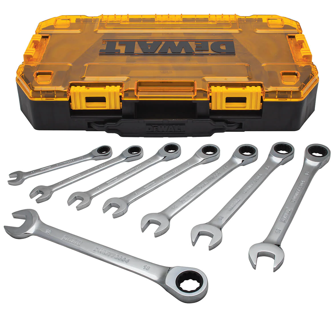 DeWALT DWMT74734 Metric Full Polish Ratcheting Combination Wrench Set - 8pc