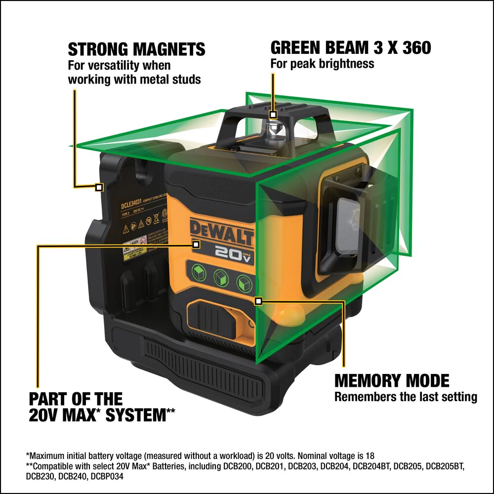DeWALT DCLE34031D1 20V 3 x 360 Green Horizontal Line Laser Kit